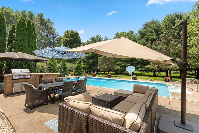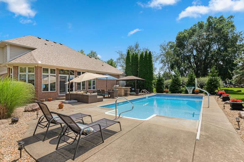Welcome to your new oasis, this immaculate beauty features main floor MBR with lovely bath & his - hers closets, large great room with lots of windows and natural light, well equipped kitchen & BKFST RM, formal dining area & 3 Additional BR's & bathroom, finished basement includes REC / PLAY RM, EX RM, & more, 3 car garage & and so much more... Relax in your sparkling pool situated on huge private lot w/ outdoor kitchen, Gazebo and plenty of room for entertaining, conv to entertainment schools & shopping.