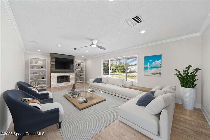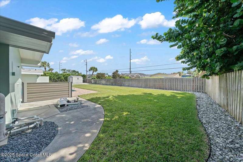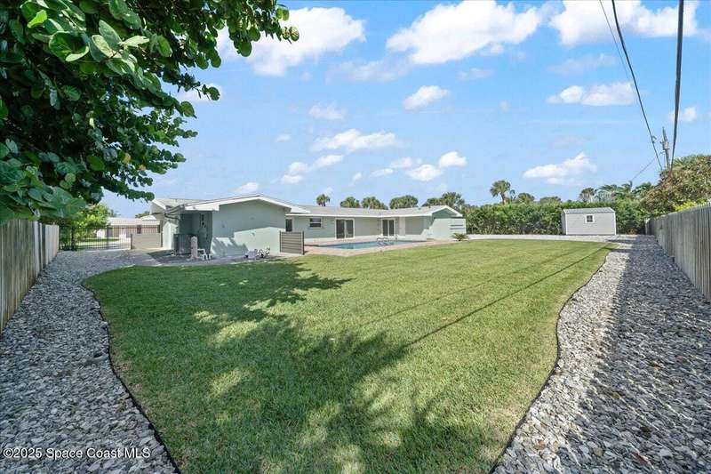 Discover this beautifully renovated pool home situated on .37 acres in the highly desired SOFA area of Melbourne Beach! This 4-bedroom, 3-FULL bathrooms, concrete block residence offers exclusive beach access shared with just 20 other homes, allowing you to reach the sand in a quick 5 minute walk. Enjoy features like wood-look tile flooring throughout, a wood burning fireplace, hurricane impact windows and doors, as well as updated electrical & plumbing and a 2020 HVAC system! The kitchen boasts ample storage with a pool view, while the laundry room includes an extra refrigerator! Outdoors, relax in the spacious east-facing covered lanai, listen to the ocean waves, or take a dip in the large pool surrounded by a paver deck and fully fenced yard, complemented by a storage shed and low-maintenance xeriscaping. With gates on both sides, there's ample room for a boat or RV, a huge circular driveway for family gatherings, and an oversized 2-car garage for all your beach gear. Conveniently located near restaurants and shops, the beach and Atlantic Ocean, the Indian River, and a short drive over the causeway will get you to mainland! This is the home everyone is looking for in Melbourne Beach! Please see feature sheet!