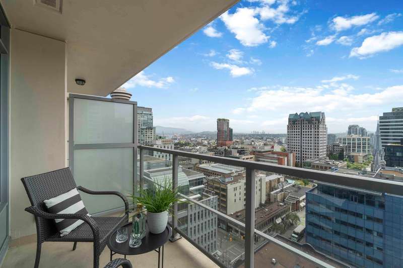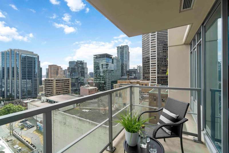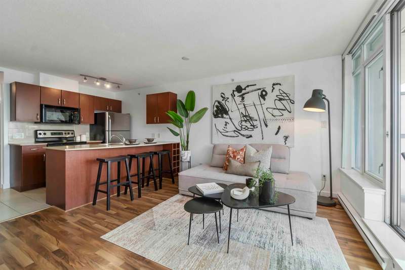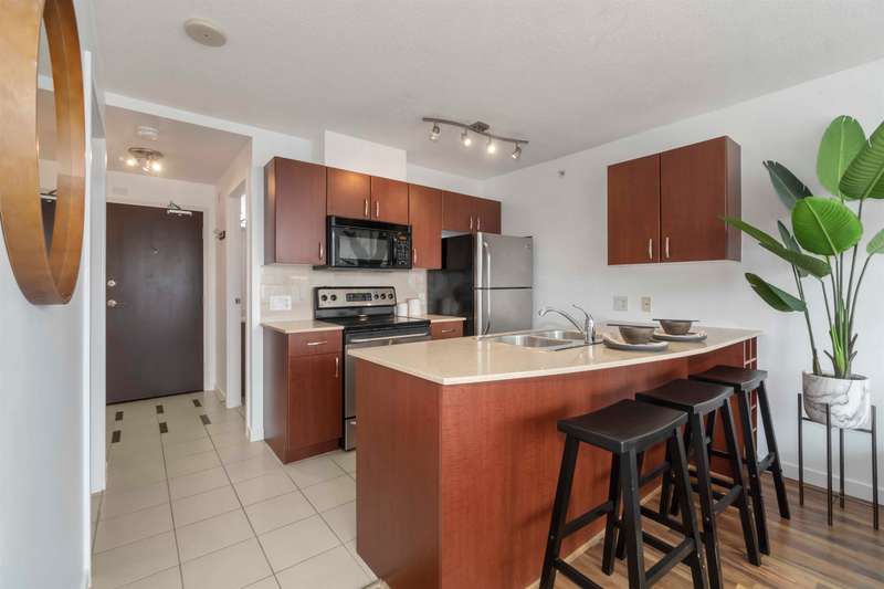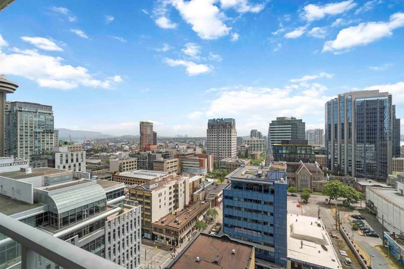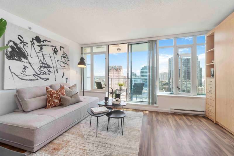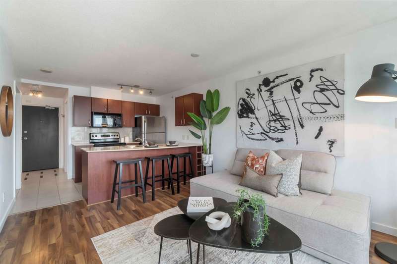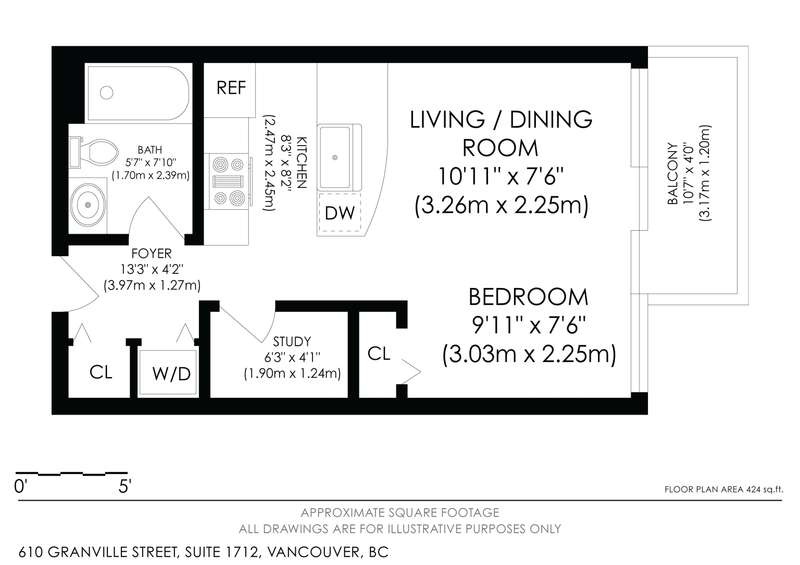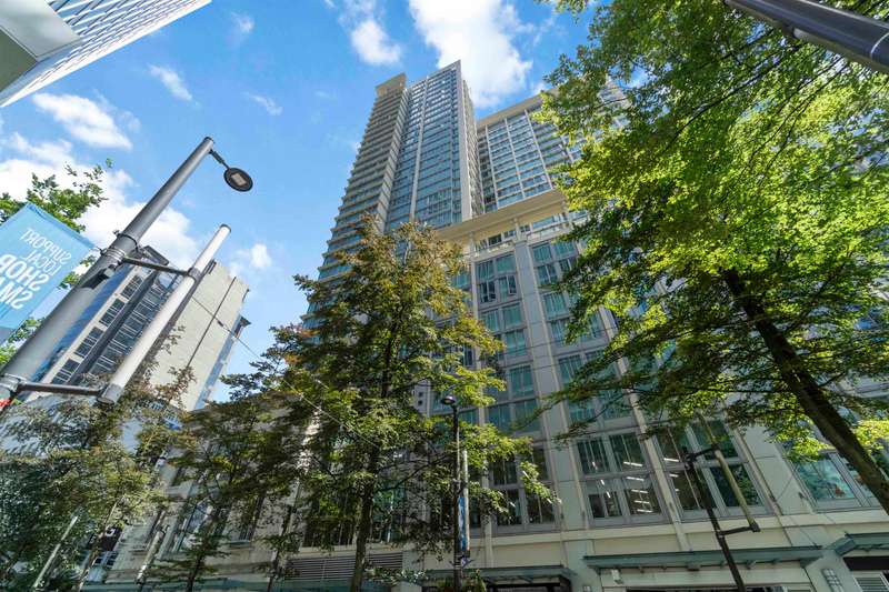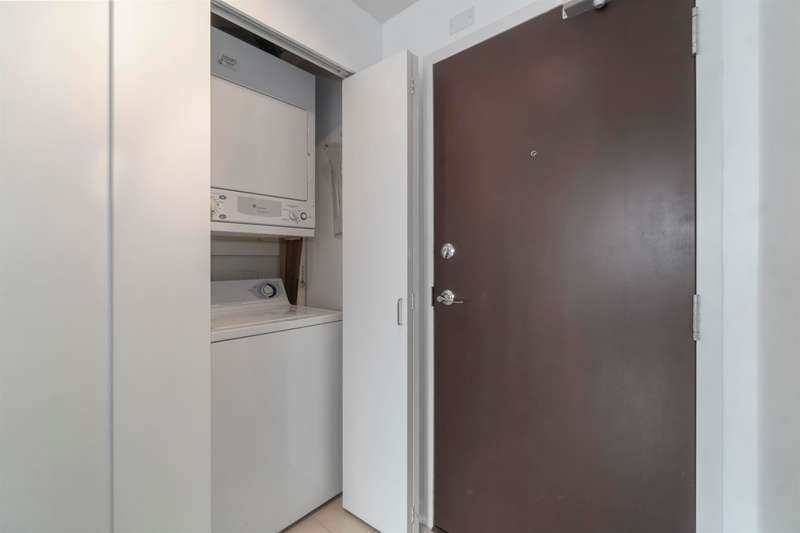 The Hudson – ultra-efficient studio with wall bed and zero wasted space. Large kitchen with full size appliances, double sink and ample cabinet & counter space. This unit has been freshly painted and is ready to move in. Open eastern exposure offers a morning sunrise and sweeping city, mountain, and water views from the covered balcony. DIRECT elevator access to Granville SkyTrain platform. Low strata fees at $240/mth but still offers 24-hour concierge, gym, lounge, visitor parking, ample bike storage, and a unique LIVE/WORK zoning. Exceptionally managed with on-site property management, proactive strata, and a strong $1.4M contingency. Move in today to this ideal downtown starter or investment property.