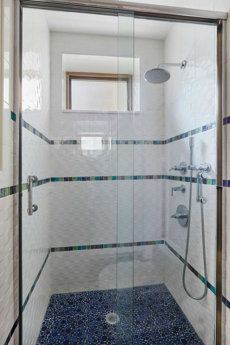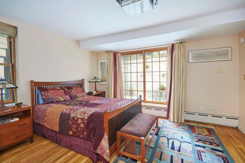 There is one bedroom upstairs, with a full-sized bathroom ensuite. Downstairs there are two oversized bedrooms, each with two exposures from its corner location. There is also a generously sized, hall bathroom and in-unit laundry on this level as well. Common laundry facilities are available additionally in the building as well.