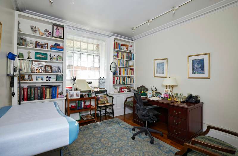 PROFESSIONAL or MEDICAL OFFICE: With enormous sun-flooded south-facing windows, this office is an especially wonderful work environment. Features include a reception area, waiting room, consultation room, exam or storage room, and a rest room. Centrally located, near excellent transportation, the office has 9ft. ceilings and crown moldings. The space is situated in Millan House, a co-operative since 1947, built by John D. Rockefeller Jr. in 1931, and has a has a separate street entrance. Millan House consists of two separate buildings connected by a two-level Italianate interior garden courtyard.