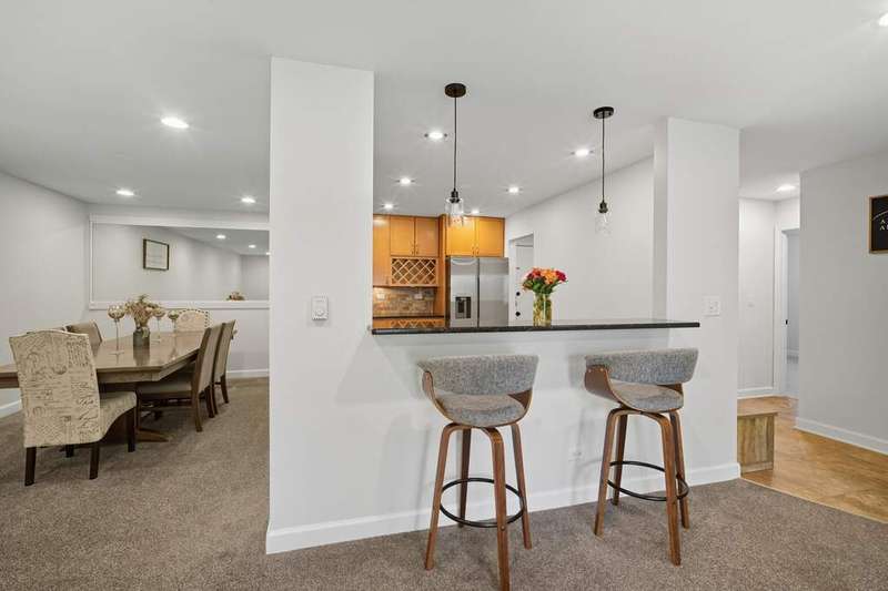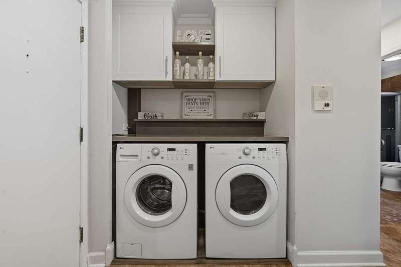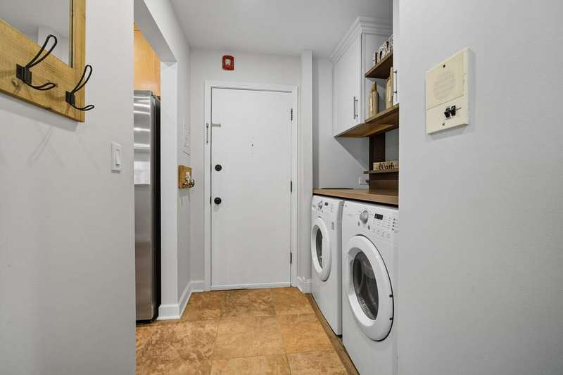 Enjoy resort-style living in Brittany Place with this beautifully updated end unit, just steps from the sparkling pool. One of the largest homes in the community, it features a private patio that opens to a serene courtyard with two ponds and a charming gazebo - perfect for a quiet morning coffee or evening relaxation. 2 large bedrooms and 2 updated full baths - including a private, ensuite retreat. Inside, the remodeled eat-in kitchen with stainless steel appliances, hardwood cabinets, granite countertops, and ceramic tile flooring makes cooking a joy. (new Samsung refrigerator 2025) The dining room/den offers flexible living space, whether you're hosting friends or creating a cozy retreat. You'll also love the remodeled in-unit laundry room with modern washer and dryer (LG brand)- a rare convenience! Heat, water, pool access, and more are all included in the association, giving you a low-maintenance lifestyle. With I-90, Woodfield Mall, shopping, and dining just minutes away, comfort and convenience are right at your doorstep. Come home to everyday ease and elegance at Brittany Place!