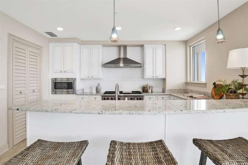 DON'T MISS THIS RARE OPPORTUNITY TO OWN A ONE-OF-A-KIND, CUSTOM GULF-FRONT RESIDENCE AT VISTA DEL MAR WITH STUNNING SUNSET VIEWS! VISTA DEL MAR IS A LOW-DENSITY, GATED COMMUNITY UNIQUELY SITUATED BORDERING MILES OF PROTECTED GULF ISLANDS NATIONAL SEASHORE AND OFFERS UNCROWDED BEACHES WITH A 30 DAY MINIUMUM RENTAL REQUIREMENT AND ONLY 64 OWNERS. COME HOME TO THIS FABULOUS 8th FLOOR WEST-CORNER RESIDENCE with huge 810sq.ft. wrap-around balcony, built-in outdoor gas grill, balcony storage closet and multiple areas to relax or entertain. This one-of-a-kind CUSTOM 4-Bedroom, 4- Full & 2 Half bath residence at Vista Del Mar is truly a 'home' at the beach; with designated garage covered parking, spacious living areas and expansive outdoor space. The living area is a perfect space for entertaining with 10' ceilings, floor-to-ceiling glass, separate dining area and wet bar. Enjoy the fabulous Chef's kitchen with eat-in-bar, white cabinetry, granite countertops, spacious pantry and top-of-the-line appliances including Wolf gas range and Sub Zero refrigerator. The spacious Primary Suite has been reconfigured to adjoin with what was originally the first guest bedroom - making it a unique private sitting area or office complete with half bathroom, allowing the Primary Suite to encompass the entire left side of the residence from the front entry to the gulf-front balcony. The bathroom has been redesigned to allow for an open, seamless flow with oversized tile shower. Vista Del Mar amenities feature a grand lobby, outdoor pool with expansive beachfront deck, hot tub and multiple covered, outdoor seating areas. Heated, Gulf-front indoor pool with gorgeous water views and owner's health club featuring a fully equipped fitness room, yoga studio, and massage treatment rooms. The Club Room boasts full bar, pool tables, and TVs. Vista Del Mar offers one of the few handicap accessible beach walkovers with ramp. WELCOME HOME TO LUXURY BEACHFRONT LIVING!