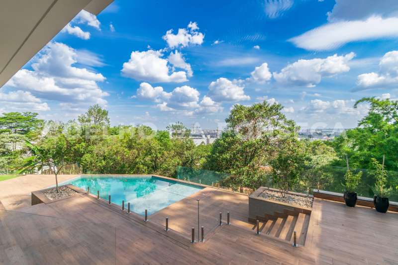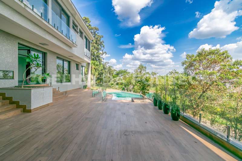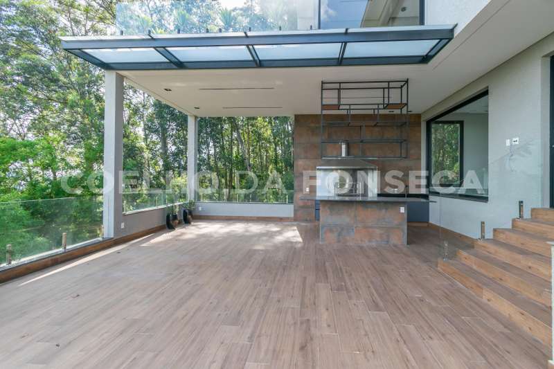 Casa no condomínio TAMBORÉ I, com 849m² área construída, 4 dormitório(s), 4 suíte(s), 8 vaga(s), 6 banheiro(s), piscina, esquina, escritório, sauna, ar condicionado, dep. de empregados, varanda, aquecedor solar, pé direito duplo.