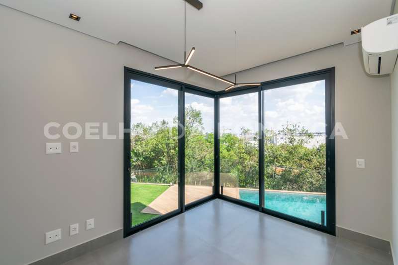 Charmosa residência, clara e envidraçada, acabamento em mármore, porcelanato, Cumaru/Sucupira, escritório, quatro suítes com ar condicionado, térreo integrado com home theater interligado a sala de estar com lareira, adega, sala de jantar, cozinha gourmet, lazer com churrasqueira, fogão e chapa, piscina, deck, banheiro de apoio, oito vagas, aquecedor elétrico-solar e fotovoltaica gerando sua própria energia. Vale a pena visitar você irá se encantar.