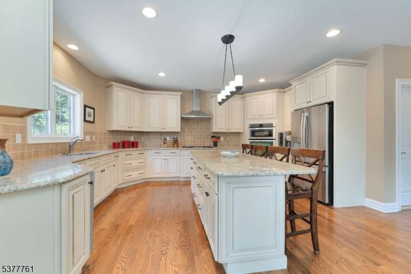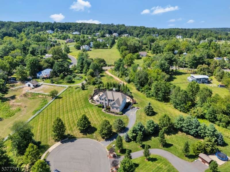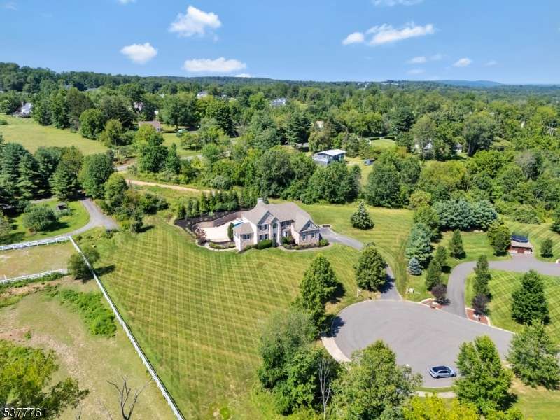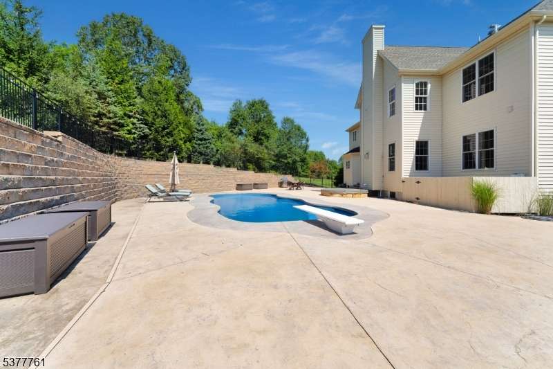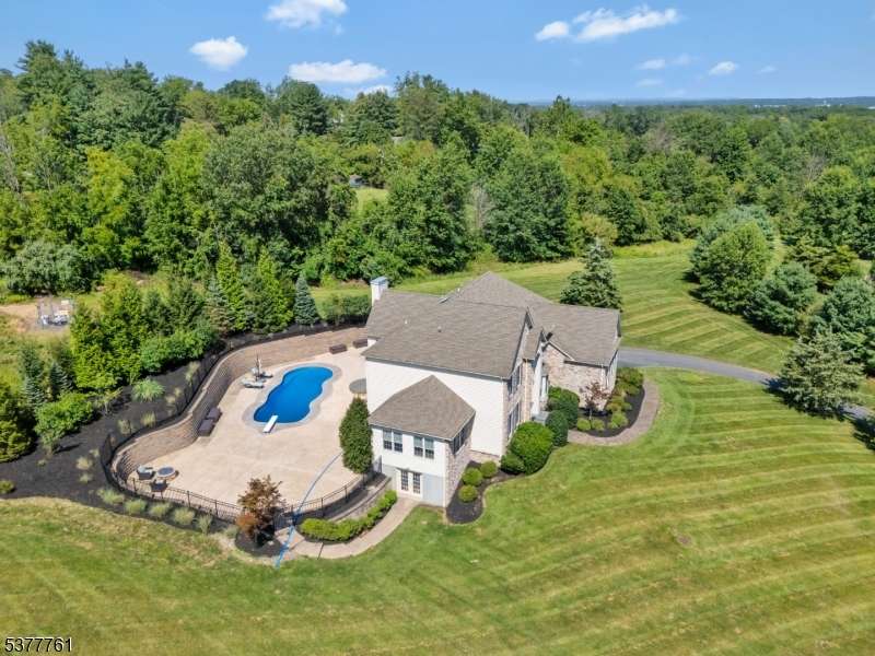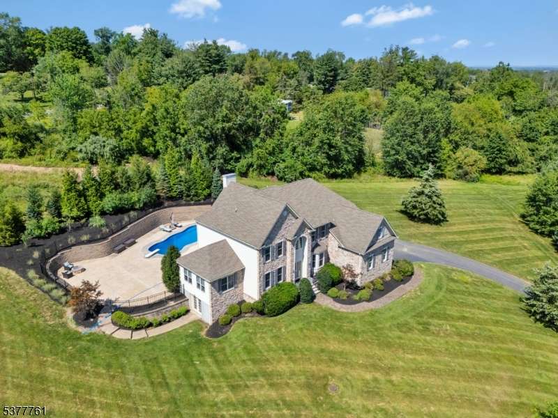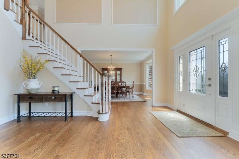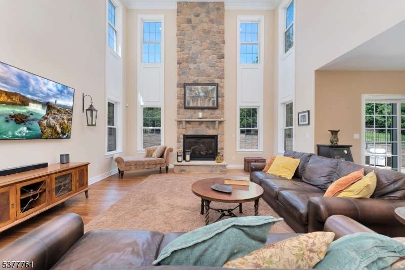 Nestled at the end of a quiet cul-de-sac in the sought-after Crystal Glenn neighborhood, this exceptional 4-bedroom, 4 1/2-bathroom Colonial home boasts 12 spacious rooms, including a private first-floor office and a sunroom. From the moment you enter, you're greeted by a grand two-story foyer and gleaming hardwood floors that flow throughout the first level. The formal living and dining rooms set the stage for elegant gatherings, while the expansive great room features a soaring two-story ceiling and a striking stone gas fireplace. The chef's kitchen opens to a large breakfast room, making it an ideal space for gathering. A laundry room adds convenience, and the attached 3-car garage provides plenty of room for vehicles and storage. Step outside into the beautifully landscaped backyard, where you'll find a stunning inground pool surrounded by generous lounging areas, a relaxing hot tub, and a firepit area, perfect for year-round enjoyment. A private stone wall provides seclusion, while mature trees throughout the yard offer natural beauty and tranquility. Upstairs, the luxurious main suite offers a sitting room, a spacious walk-in closet, and a spa-like bath with a jetted tub and shower. The second bedroom is a princess suite with a full bath, while two additional bedrooms share a charming Jack and Jill bath. The finished walk-out basement features a kitchenette, exercise room, theater room, and a media area, offering endless possibilities for entertainment.