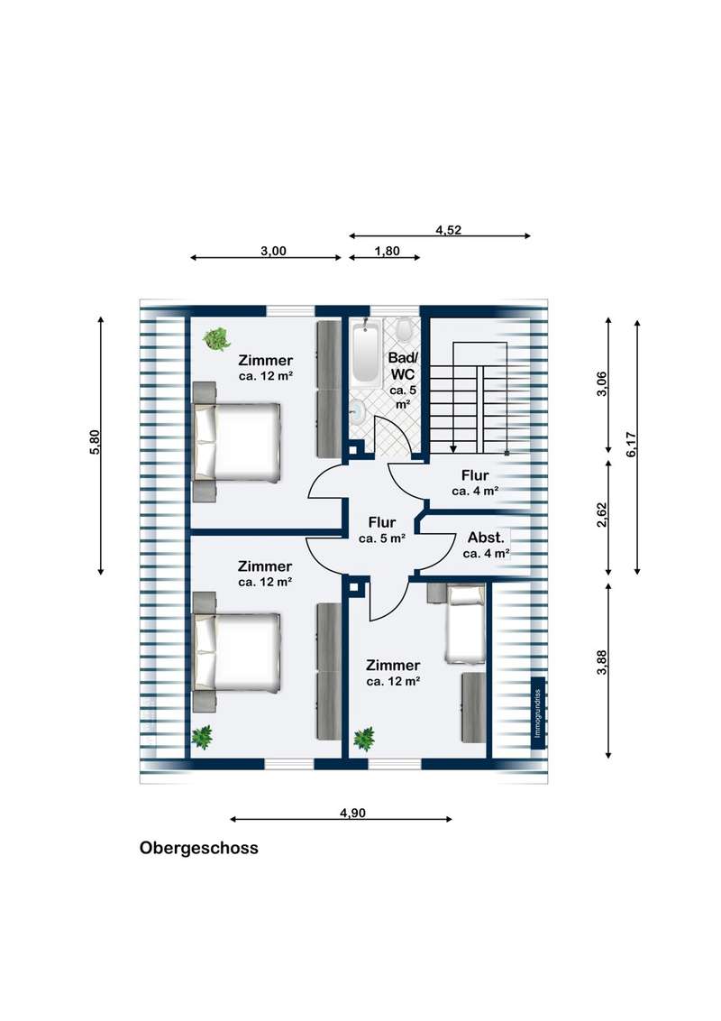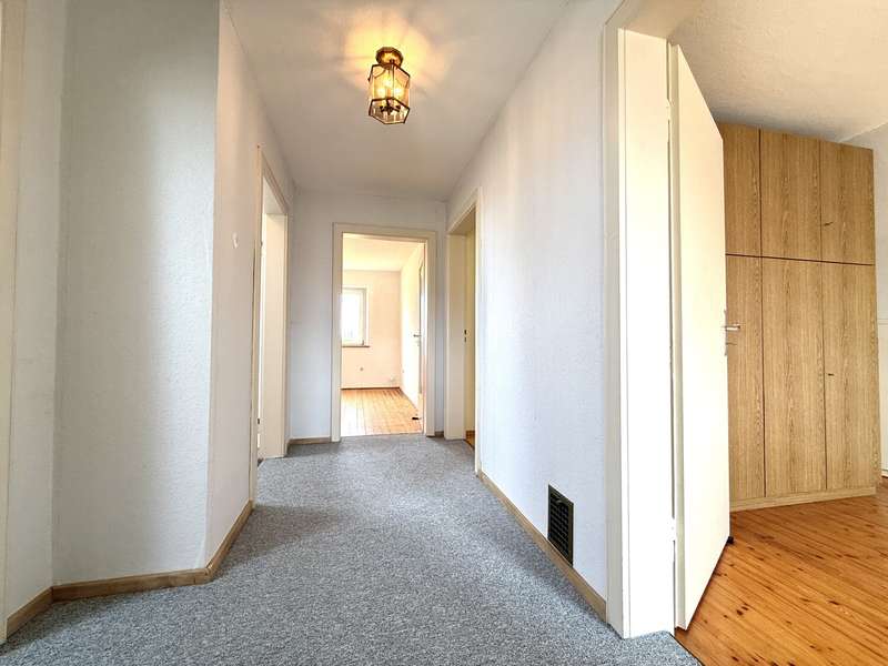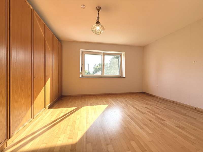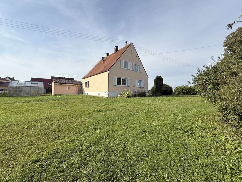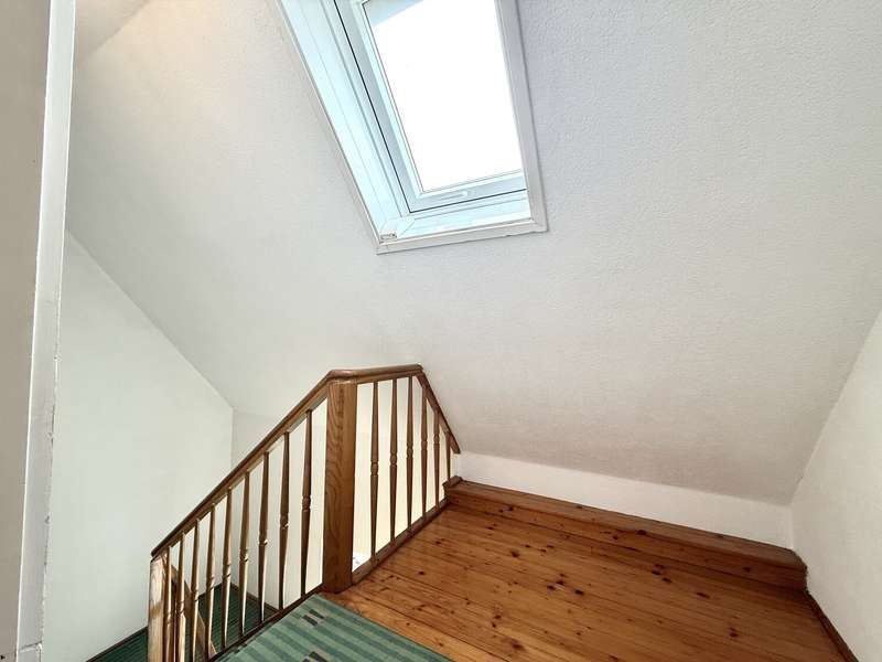 This well-kept detached house presents an attractive opportunity for buyers who value a well thought-out room layout and an attractive plot. The property is located in a young residential area with good connections to all important facilities for daily needs. The house, which is ready to move into, offers plenty of space on approx. 118 m² of living space spread over two floors. A weather-protected entrance area welcomes you in front of the house, followed by the hallway with staircase. On the first floor you will find the stylish living room, whose large windows let in plenty of natural light. The eat-in kitchen has a functional layout and offers space for both cooking and socializing. A bathroom, spacious bedroom, WC and storage room are also available on the first floor. The beautiful wooden staircase leads to the upper floor, where there are three bedrooms, a bathroom that can be converted and a storage room. The rooms can be used flexibly - whether as a children's room, study or guest room - and guarantee individual design options. The modern metal shutters on the east side provide shade and a charming look. Additional roller shutters throughout the house, including the skylights, ensure privacy and can be darkened as required. Another highlight of this property is the area with a full basement, which not only offers plenty of storage space, but also room for hobby rooms or a laundry room. The basement impresses with practical details, such as access to the garden, as well as sufficient ventilation and light. The approx. 1,000 m² plot of land has been planted with trees, creating a well-kept and natural impression. The outdoor area also boasts a greenhouse, which offers hobby gardeners a wide range of possibilities. Whether for growing your own vegetables or for overwintering plants - nothing is left to be desired here. A garage is also available; it offers space for a vehicle and provides additional storage space. The surrounding area is characterized by a family-friendly neighbourhood, shopping facilities within walking distance and good transport links. Particularly noteworthy is the combination of a well thought-out floor plan, storage space and the spacious outdoor area with greenhouse. This house is ideal for families or couples who appreciate individual living and their own garden paradise. Come and see the many possibilities of this attractive property for yourself during a personal viewing. Feel free to make an appointment - we look forward to presenting the details to you on site.