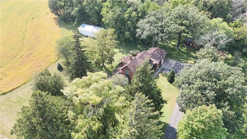 Historic 1872 Farmhouse on 6.3 Acres - A Rare Blend of Preservation and Modern Craftsmanship This beautifully restored 1872 farmhouse sits on 6.3 serene acres along a blacktop road, offering a rare opportunity to own a truly one-of-a-kind property where history, character, and craftsmanship converge. Every inch of this home has been thoughtfully renovated to maintain its original charm, while seamlessly integrating modern comforts. The renovation was a labor of love, with an uncompromising dedication to authenticity. Much of the work used repurposed wood and materials - not only to reduce waste, but to ensure the textures and finishes stayed true to the period. Custom-milled trim was handcrafted to match original 19th-century profiles, preserving the visual language of the home's roots while offering fresh, flawless finishes. Throughout the house, you'll find intricate woodwork and fine details that reflect the era's craftsmanship - from the door casings to the stair railings - all restored or recreated to echo the past. Original architectural elements were maintained or recreated wherever possible, creating a warm and timeless atmosphere. While honoring its heritage, the home also received a new roof in 2023, has fully updated windows, land modern electrical systems, making it as reliable and efficient as it is beautiful. Comfort upgrades include hot water heat, central A/C, and in-floor heating in the kitchen addition, bathroom, laundry room, and attached garage - ensuring this historic gem lives as comfortably as any modern home. This home's story is just as rich as its character. Rumored to have hosted Al Capone during his travels and once owned by a Civil War veteran, it was proudly featured on the 2010 Tour of Homes, showcasing its unique beauty to the community. Outside, enjoy a front and back deck (with hot tub and gazebo) perfect for relaxing or entertaining. A cozy 3-season porch adds to the charm, while a storage shed with fenced enclosure is ideal for a chicken coop, garden, or creative use. A spacious 48x28 pole shed and a large attached garage provide excellent workspace or storage. This home is more than just a place to live, it's a piece of history brought back to life with care, creativity, and reverence for its past. The deeper you look, the more you'll appreciate the extraordinary detail and passion that went into every finish. This is truly a home that you must see in person to appreciate.