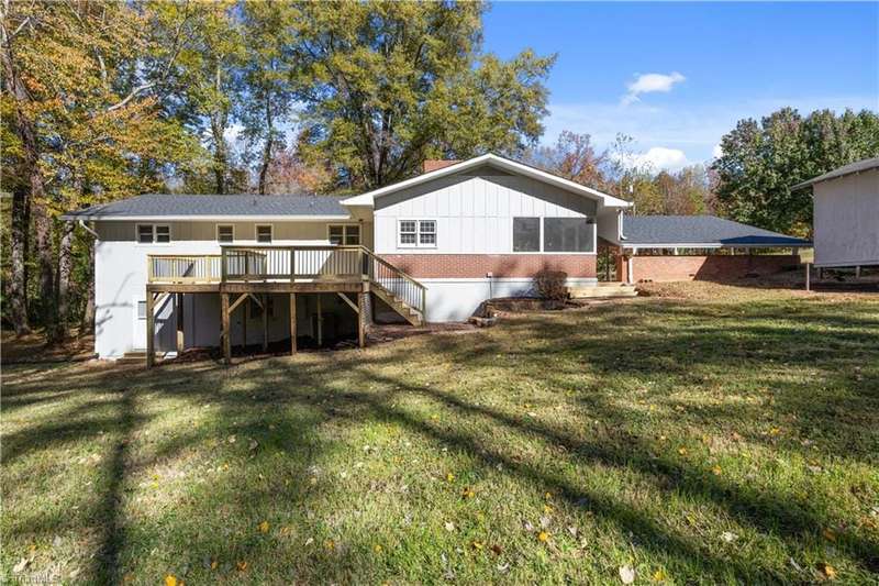 Low county taxes and city convenience! Mid-century home on 1.16 acres with 3 bedrooms and 2.5 Baths. Plenty of Lawn for gardening and outdoor activities. The home has a large carport and screened porch. Great new deck in back with expansive views of the property. Storage shed for lawn equipment. Lots of privacy. The exterior is freshly painted. New handrails on the floating stairs front porch. There are 2 roomy basement areas for hobbies and recreation. Come bring your personal touch to this wonderful home!