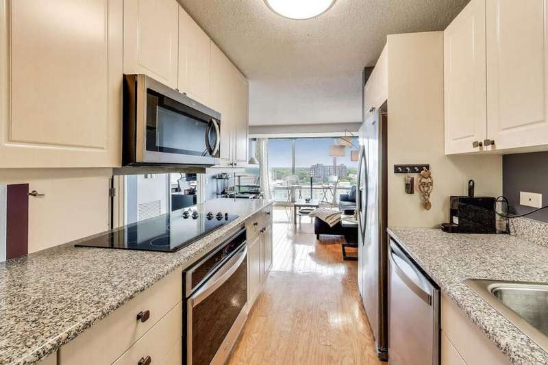 Downtown Evanston Living at Its Best! This high-floor 2-bedroom PLUS DEN condo at Optima Horizons offers unobstructed western views and one of the building's most spacious layouts. The sun-filled living room, floor-to-ceiling windows, and private balcony create the perfect setting to enjoy stunning views and sunsets-and yes, grilling is allowed! The open kitchen features granite counters, stainless-steel appliances, and a seamless flow into both the separate dining area and living room. The versatile den is ideal as a home office or guest space and is enhanced with custom cabinetry for additional storage. Hardwood floors throughout, a large primary suite with Elfa-organized closet, and in-unit laundry add to the appeal. (2) deeded garage parking spaces plus storage are included. Optima Horizons is a full-amenity, pet-friendly building with full-time door staff, indoor pool, fitness center, sun deck/garden terrace with grills, and on-site management. Prime location-just blocks to the NU campus, the Lake, bike paths, Metra, shops, restaurants, and theaters. Move-in ready!