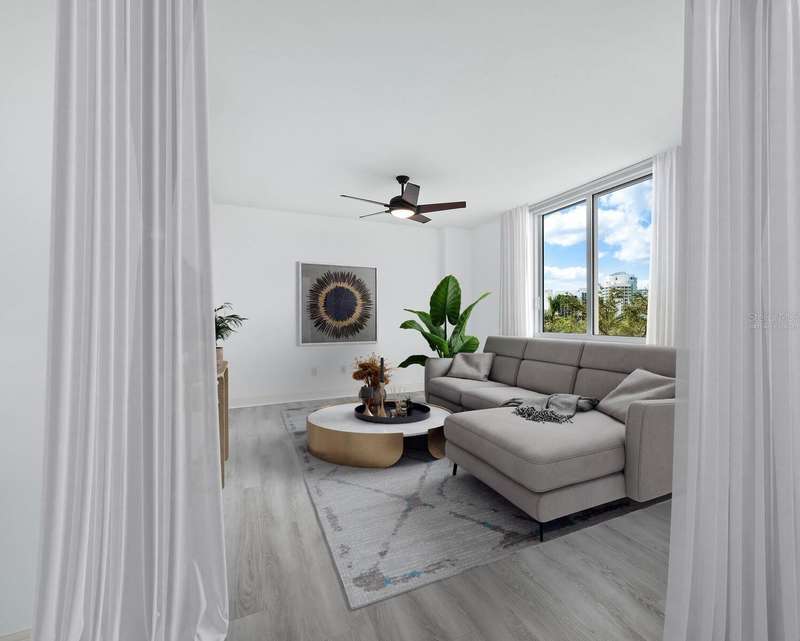 Welcome to Alinari in the historic Rosemary District! Alinari is situated in the heart of downtown Sarasota and steps away from “The Bay” Sarasota’s new 53-acre signature Bayfront park, as well as the acclaimed Van Wezel Performing Arts Center. Step into over 1900 square feet of light and bright space and a flexible floorplan with tons of living space. In addition to two dedicated bedrooms, a den could serve as a third bedroom or an office, fitness/music room or library. The kitchen is open to two adjacent living rooms, with views to the wrap-around terrace and beyond, and perfect for entertaining. Notable features include motorized blinds, new appliances, and freshly painted interior. Alinari is known for it’s resort-style amenities, including 24/7 concierge services and security, olympic size pool, state of the art fitness center, spa, sauna, massage room, billiards and game room, theatre, private temperature controlled wine storage and tasting room, conference rooms, guest rooms, and more! This 11 acre property is a trolley ride away from St. Armand’s Circle, Lido Beach and world-class dining in Downtown Sarasota. Also notable, large pets are welcome here. This is Sarasota’s coastal urban living, at its finest!