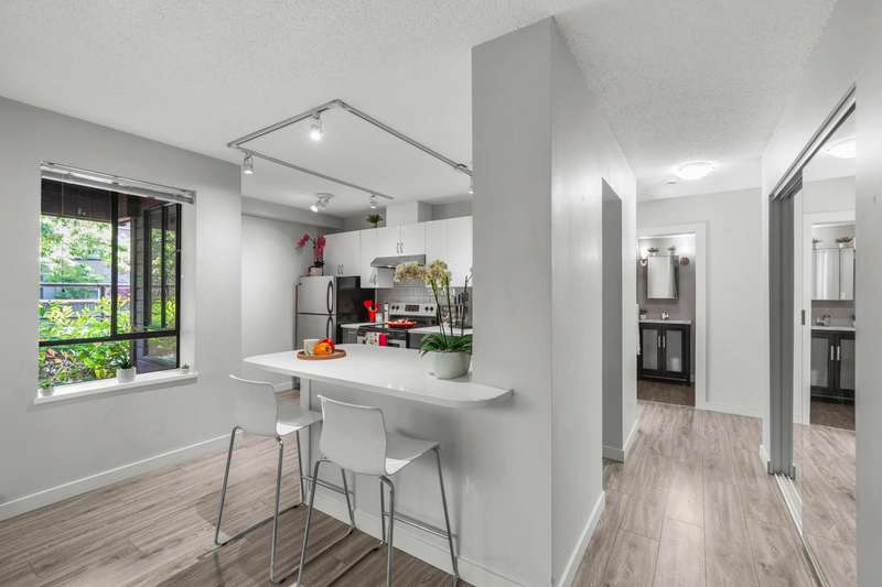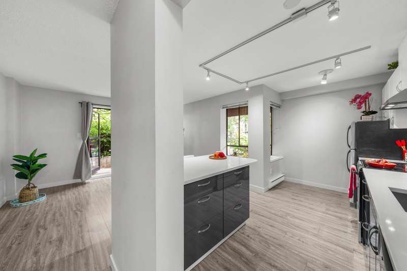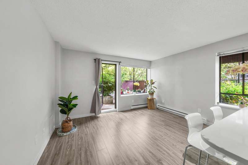 Garden-level corner home feat. spacious PRIVATE PATIO & dedicated street-level entrance, offering a total living space of 693SF. Enjoy a bright & airy open-concept layout w/ large corner windows, maximizing natural light & eliminating wasted space. Kitchen offers quartz countertops, S/S appliances (incl a DW), plenty of storage & prep space—ideal for both cooking & entertaining. This move-in ready home has been renovated, features secure parking & a storage locker. A short stroll to VGH, CityHall, Broadway Station, major bus lines or a 15min walk to the False Creek. You’ll love being steps from all the shops, cafes, and amenities of the vibrant Cambie & Broadway corridors. This home is perfect for a working professional; first time buyer; a couple; or investor (recently rented for $2,340)