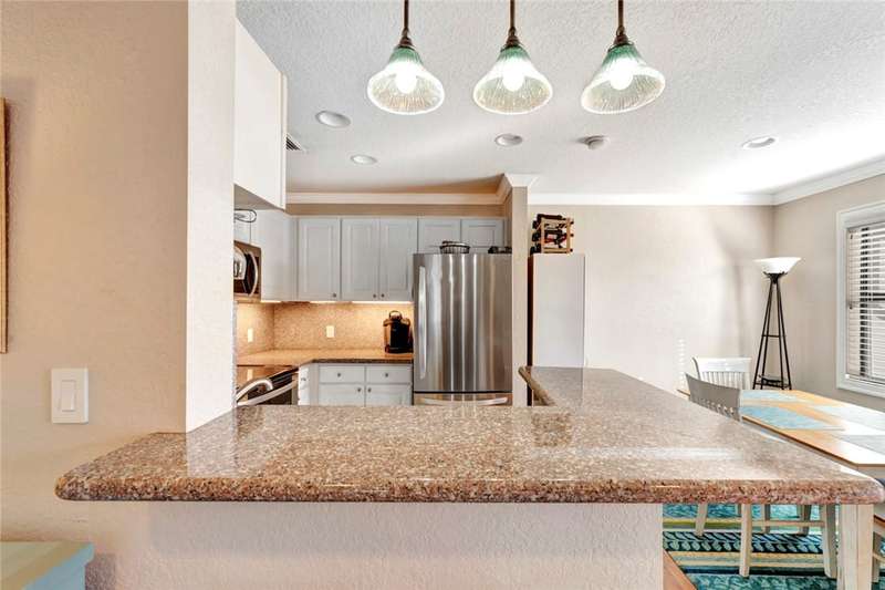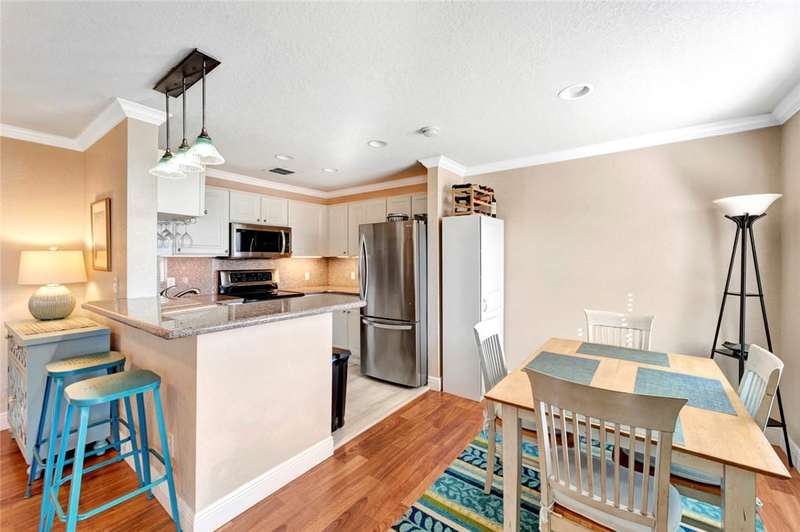 Gated community living in the heart of Vero Beach, only 2.5 miles to the beach! This updated 2 BR / 2 BA 2nd-floor condo at Breakwater Pointe features granite counters, new stainless-steel appliances, and crown molding throughout. Enjoy a bright open living area, covered balcony, and low-maintenance flooring. 2006 rebuild with metal roof and newer construction quality. Designer furnishings included. Sizes are approx/subj to error.