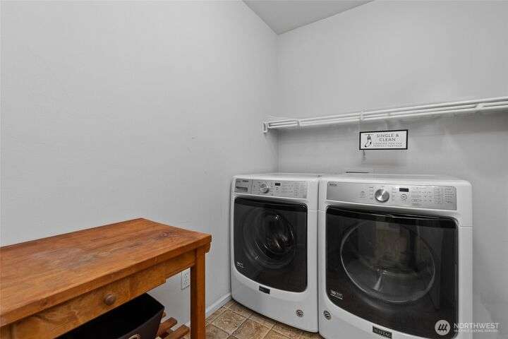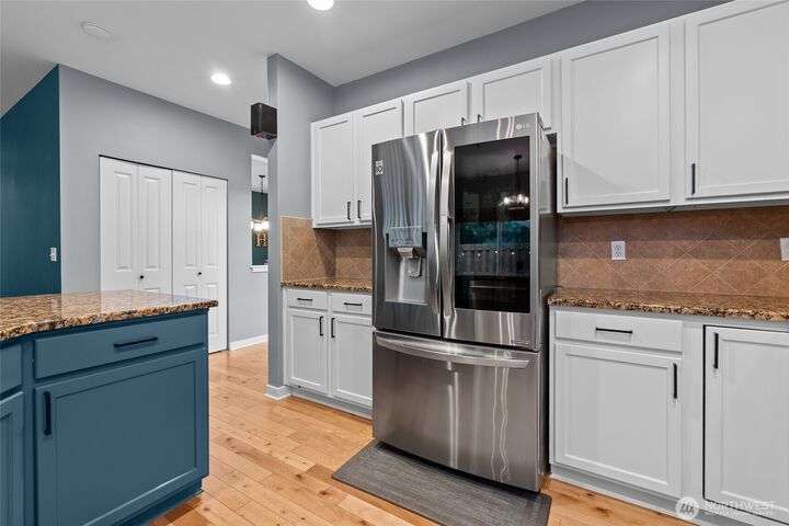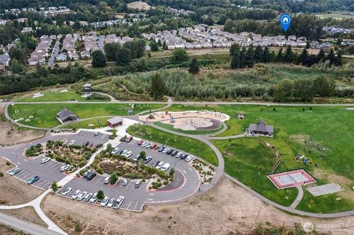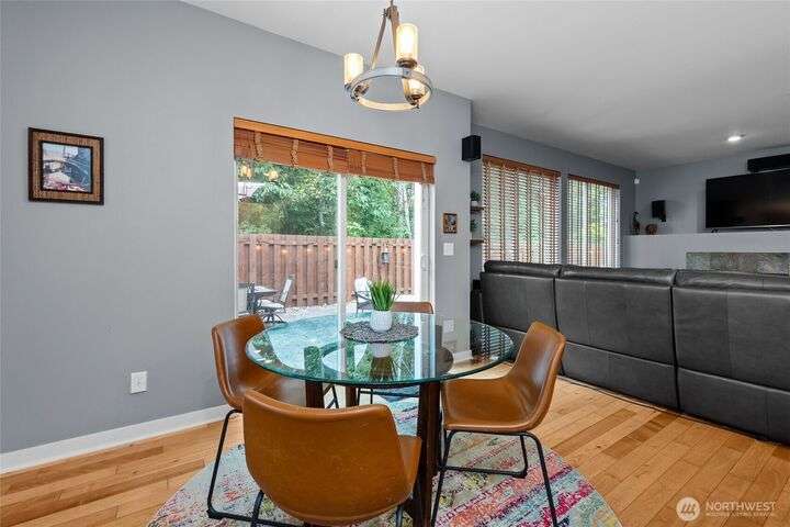 Hot on the market, this desirable home has so much to offer. Soaring ceilings as you enter, real hardwood, formal dining, living room, the grand, open kitchen w/ SS appliances flows into the cozy family room w/ gas fireplace, bed 1 & more all on the main level. Upstairs primary suite, 5-piece bath, walk-in-closet & 3 more spacious bedrooms w/ full bath & laundry room. Fresh paint throughout. The fully fenced backyard is your own retreat as you soak in the quiet surroundings of nature & entertain on the patio w/ built in firepit. New A/C Furnace in 2020. Ample parking 2 car & 1 car garage along with driveway parking. Enjoy the community playgrounds, walking & biking paths. Convenient location makes easy access to I-5, Amazon & Airport...