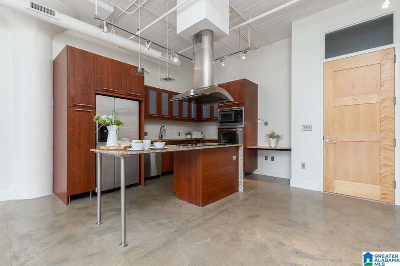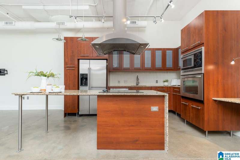 LIV ON FIFTH! Upscale loft living that is SO convenient to UAB, restaurants, nightlife, downtown and Railroad Park. This one bedroom one bath loft has a great floor plan and features huge windows and 11 foot ceilings which make this unit well lit and very open.You will love that the kitchen has stainless appliances, granite countertops and great cabinet storage. The island has an electric cooktop with a stainless vent hood and wrap- around bar seating. The master bedroom has a nice window and the ship lap wall separates you from the living area, a large walk in closet and master bath with storage cabinets and a tile shower. Enjoy the assigned parking in the gated area. This is one of the most complete buildings in the downtown area and features a fitness facility, a common area, climate controlled storage unit, large elevators and an amazing roof -top deck with the best views of the city and Red Mountain.