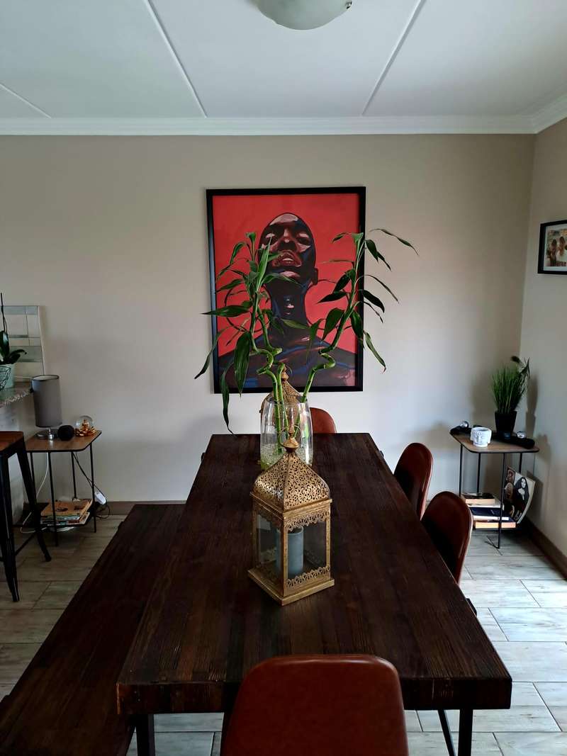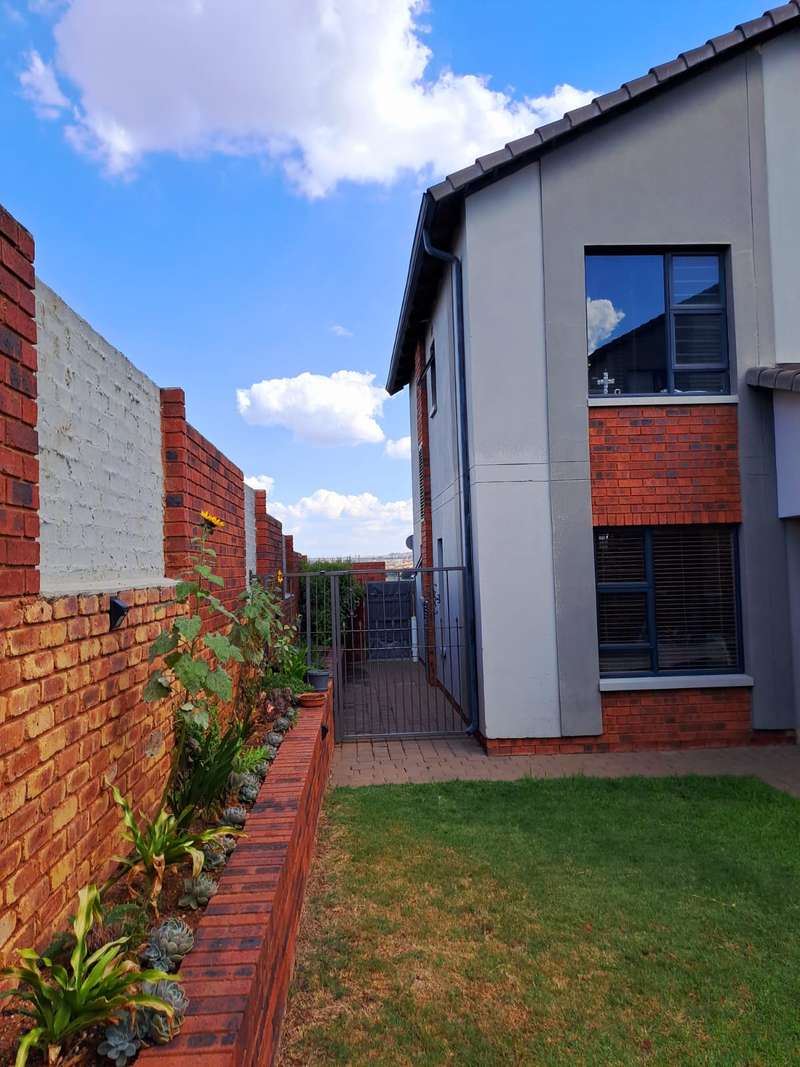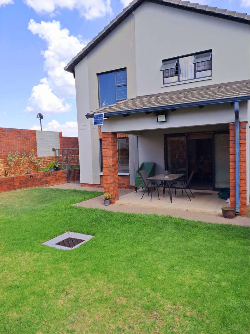 Welcome to your Dream home This stunning home features modern finishes throughout, creating a unique and stylish atmosphere. The trendy kitchen boasts granite tops, and a covered patio leads out to a beautiful garden complete with a water fountain. The home itself , which is picture perfect, flaunts attractive open plan living areas and a modern kitchen with gas stove, ample cupboard space, pantry and accommodates a washing machine and dishwasher. All three bedrooms are located upstairs. The master bedroom is ensuite, while the other two bedrooms share a common bathroom. All 3 bedrooms offer built in cupboards and fitted blinds. There are two covered carports for exclusive use and loads of visitors parking.. This stunning property offers comfort, security and modern living located in a sought after security estate, its perfect for families, professionals or anyone looking for a serene oasis. This beautiful home is located next to Amber field College, which offers absolute ease of getting the kids to school. The Hudson lifestyle Estate is conveniently located within 4 km of various shopping centers and medical facilities and offers easy access to the R55 and N14 highways ensuring smooth travel to other parts of the city. Downstairs Lounge Dinning Room Kitchen with gas stove Guest toilet Patio well maintained garden windows with fitted blinds Upstairs Main bedroom en-suite 2nd bedroom built in cupboards with fitted blinds 3rd bedroom built in cupboards with fitted blinds clubhouse Fiber Ready