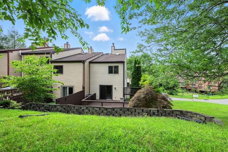 Welcome to this end unit 2 bedroom 2.1 bath townhome in the desirable Fairway Falls neighborhood. This hillside home offers a 1 car garage with extended storage space/basement, 2 decks, large and private rear yard backing open field that used to be the old golf course. Inside you will enjoy a living room with wood burning fireplace and slider to a deck overlooking the front of the home. A few steps up the hall there is a large family room with sliders to the rear deck and access to the kitchen. Kitchen with recessed lighting, stainless appliances and original retro cabinetry. Two large bedrooms on the second floor each having their own full bathrooms and wall to wall carpeting. Laundry on the second floor with a hall skylight bring the natural light into the home. This house is move-in ready for it's new owner.