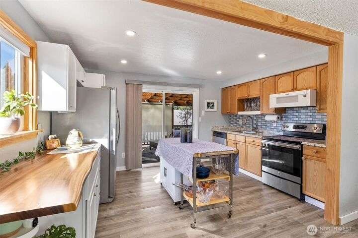 Freshly painted and move in ready! A wonderful home with open floor plan & spacious kitchen. The Covered backed deck feels like a another living space ready for guests w/ privacy screen & landscaping to keep in private. Updated main bath w/ beautiful vanity. Lower level could easily be another suite with large bedroom w/ direct access to backyard and recently updated bath. Family room plumbed for wet bar offers all kinds of options. Large fully fenced backyard w/ patio area and deck access makes it a great for entertaining. Extra long garage has room for a car and a nice workshop area too. Just minutes to charming downtown Granite Falls w/ shopping, dining. The perfect location with easy access to all your outdoor adventures
