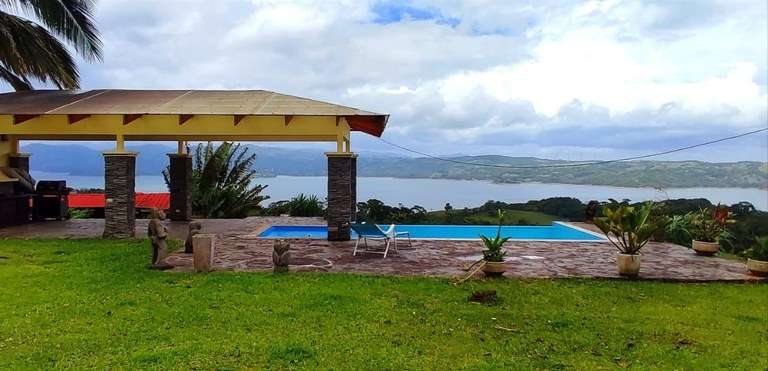 Set on a scenic ridge overlooking Lake Arenal and the Arenal Volcano, this fully furnished 3-bedroom, 3-bathroom home offers luxury living in a peaceful natural setting. The 4,000 sq ft residence features a deep swimming pool with jacuzzi, a large rancho with a fireplace, and wraparound verandas ideal for outdoor living. Blending Costa Rican charm with modern comfort, the home includes native hardwood finishes, vaulted ceilings with cana brava, and a fully equipped kitchen. Located just 10 minutes from Nuevo Arenal on paved roads, with high-speed fiber internet and cell service, this turnkey property is available on 1.9 acres for $349,900—or with an optional adjacent lot totaling 3.6 acres for $449,900.