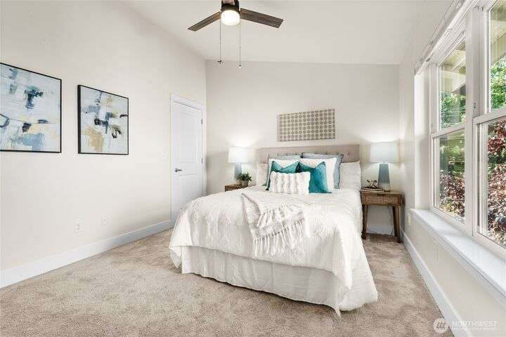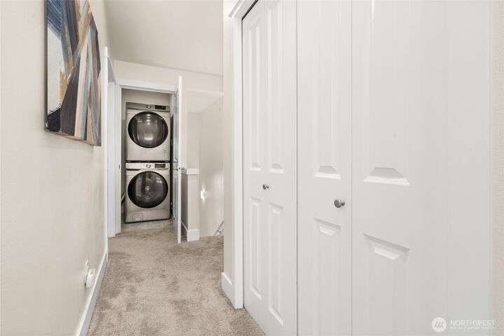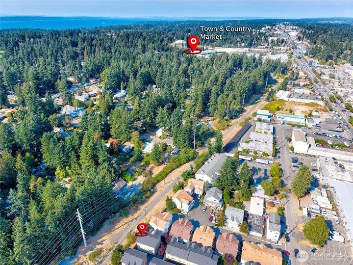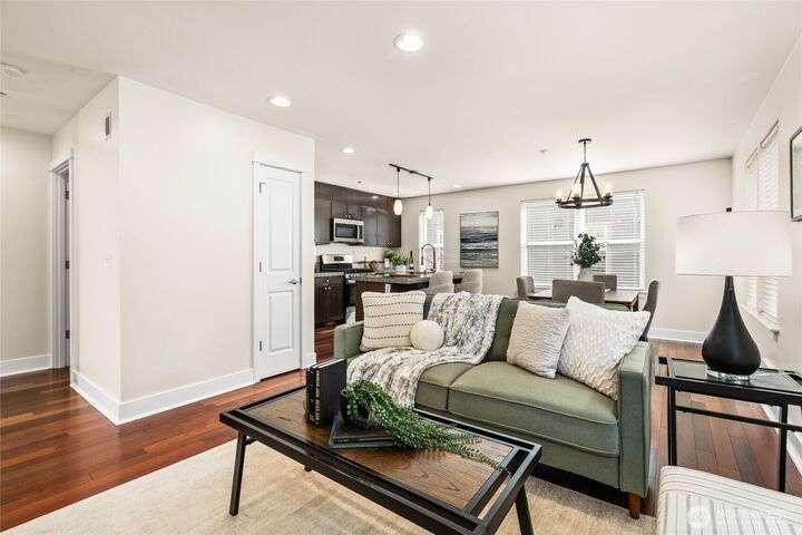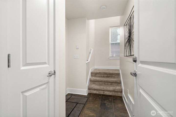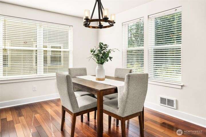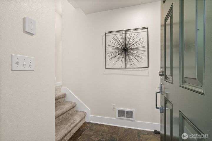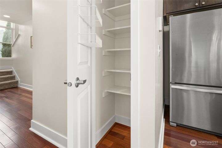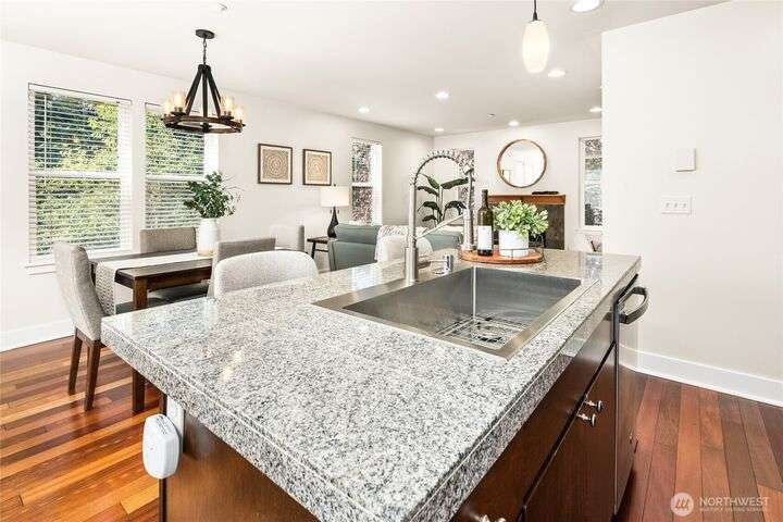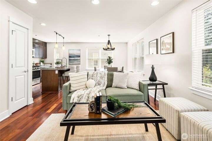 This bright and welcoming townhome feels like a sanctuary amidst an urban hub. Inside, relax in an open concept living area, staying cozy by the fire while a pot of soup simmers in the oversized kitchen. Stunning hardwoods give timeless style to the space. Head upstairs to the bedrooms – both quiet and with peek-a-boos of the Shoreline treetops. Closets galore on this level! This end-unit also has an ultra-spacious 2-car garage-storage needs are covered. A serene private yard offers easy access to the Interurban Trail which leads to bus routes, grocery stores, parks, cafes, Pagliacci Pizza and more! 148th St light rail provides even more transport options. New roof in 2021. Located in a coveted school district, too. This may be the one!