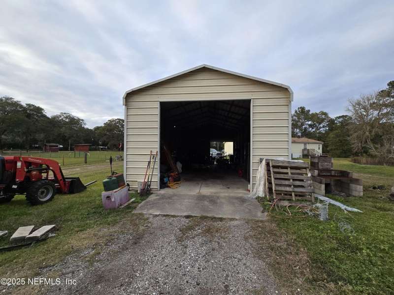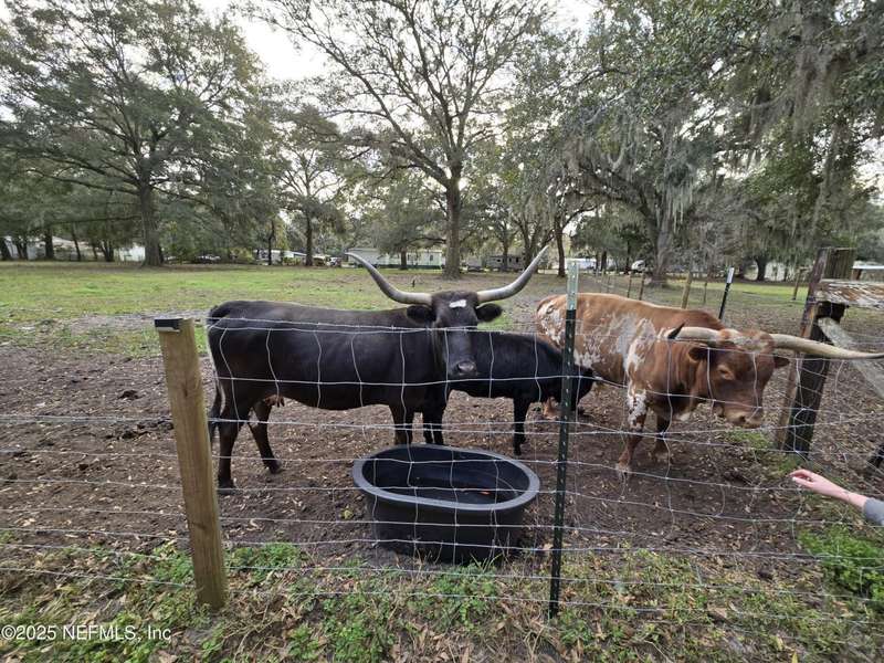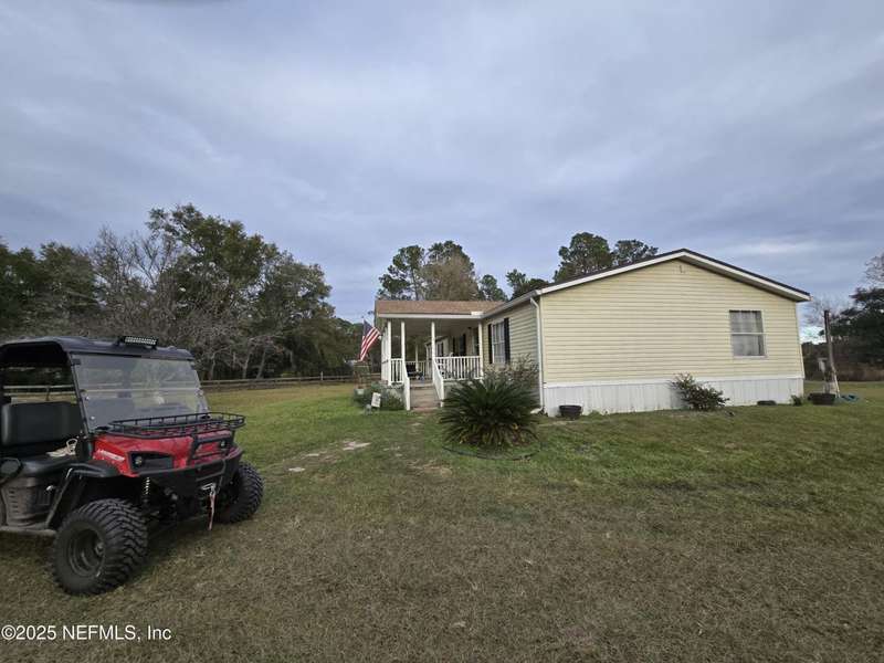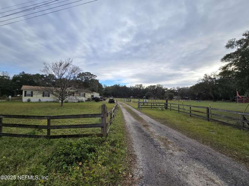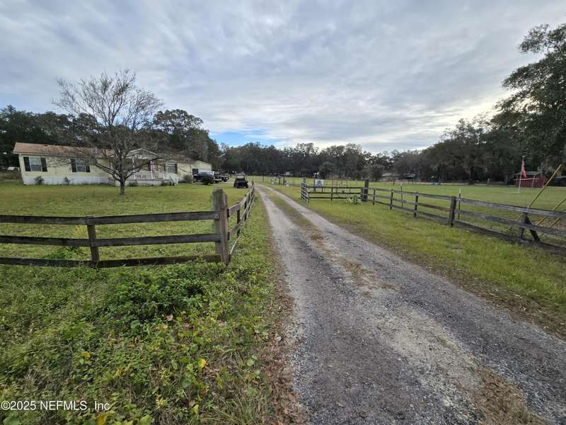 Motivated to sell. Entertaining all reasonable offers. 2 ponds on 9.06 acres+/- offers a perfect blend of tranquility & convenience on this miniature cattle ranch. Nestled in a quiet rural neighborhood, this charming property is just minutes from upscale town center shops & restaurants of Yulee, FL. Ranch features a cozy manufactured home with a new roof, stainless steel appliances, fresh paint, new carpet, & luxury plank floors. Grounds include a large outbuilding for RVs, cars, trucks, or large farm equipment. The fully fenced property is equipped w/ separate pump house & extra workshop w/ electricity, corrals, barns, & feeding troughs for various livestock, ideal for farm living. Livestock & utility vehicles are negotiable w/ property. Embrace the tranquility & charm of rural life while staying close to modern amenities. Luxurious Amelia Island is only 11.7 miles away, & Historic Downtown Fernandina Beach is just 13.9 miles away. Minutes from Half Moon Island Preserve & Boat Ramp