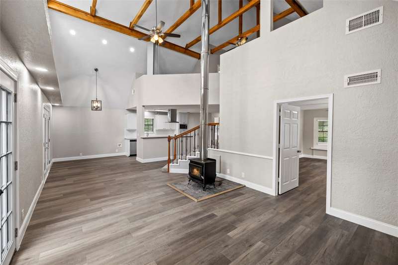 Escape to your own private retreat with this beautifully updated 3 bedroom, 2 bath home on 1.647 wooded acres.Tucked away in a secluded setting, yet conveniently located near Mt. Pleasant, Mt. Vernon, Pittsburg and multiple area lakes, this property blends comfort and modern style with natural surroundings.Step inside to an inviting open-concept layout filled with natural light, highlighted by striking beams and contemporary finishes. The living area features a cozy wood-burning stove, perfect for chilly evenings, while recent updates-including paint, flooring, appliance, HVAC and fixtures make the home move-in ready. The home features Spectrum high speed fiber optic internet service -- useful for work or play!And the seller is offering $5000 for window allowance with acceptable offer! Enjoy the outdoors from the spacious open deck or take advantage of the two barns offering plenty of room for storage, hobbies or projects. Whether you're relaxing at home, entertaining friends or exploring nearby Lake Bob Sandlin or Lake Cypress Springs, this property offers the perfect balance of modern living and rustic charm.