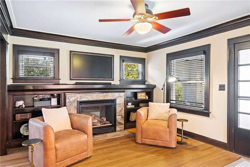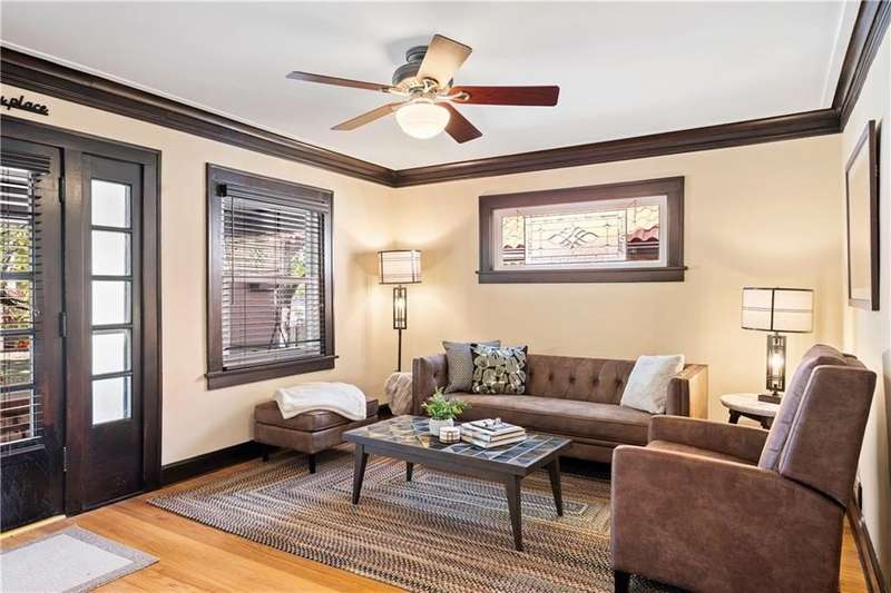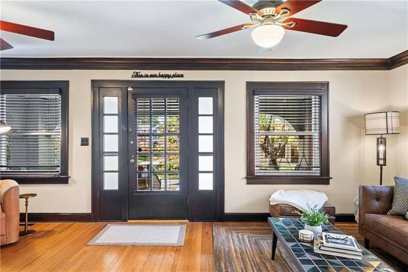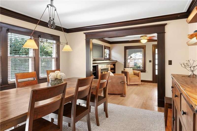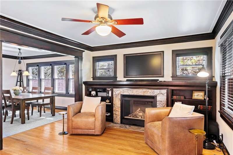 This house has just about everything you would want in a Brookside home...and MORE! A cozy front porch welcomes you inside to the bungalow floorplan: two bedrooms and full bath on the first floor; third bedroom, full bath and bonus space on second level. You will appreciate the original 1924 charm here: (gas) fireplace with bookshelves on either side; hardwood floors, crown molding, and stunning leaded glass doors in the spacious dining room lead you into the large, eat in kitchen. First floor bath recently completely remodeled! Upstairs, a sunny bonus room and updated bath connected to the third bedroom-check out the original Craftsman doors on the closets! Roof & HWH less than ten years old. Newer windows. Outside, the wide private driveway leads to a an oversized 22'x39' garage with it's own electrical box, water, gas furnace and a/c. Think of the possibilities here: man cave or she shed, kids' playroom, rec room, extra storage, ADU. This house sits in an ideal Brookside location--grocery store, bank, restaurants, cafes and shops just across the street!! The popular Trolley Track Trail is nearby as well. If you want to live in Brookside, this may be the ideal home for you!!