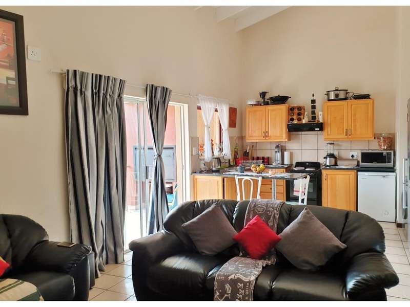 Secure gated entry into this lovely well-maintained complex. The upstairs apartment has a small entrance area leading to an open plan living area/kitchen. A sliding door leads out onto the covered balcony with a built-in-braai. The kitchen has fitted jacaranda cupboards; granite counter tops, a freestanding stove, and has plumbing for a washing machine. Two bedrooms ?Çô both with loads of cupboards. The main bedroom is en-suite with shower, hand washbasin and toilet. The second bathroom has a bath. Single undercover parking bay and ample open parking for visitors. Communal walkways and washing line court. Pets unfortunately not allowed. The development is walled with electric fencing and has cell phone gate access. Pre-paid electricity. The complex is within walking distance to the White River Crossings Shopping Centre and close to schools. Matsefeni is child friendly, and lends itself to a perfect lock up and go!