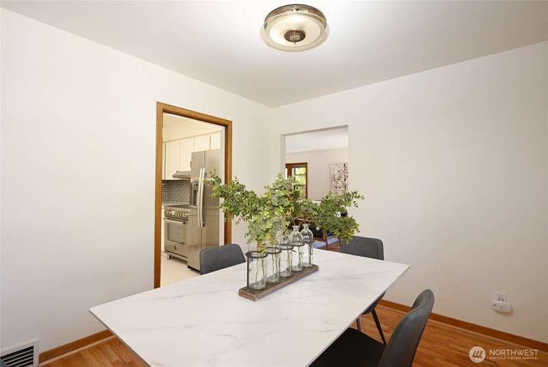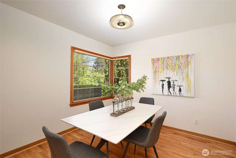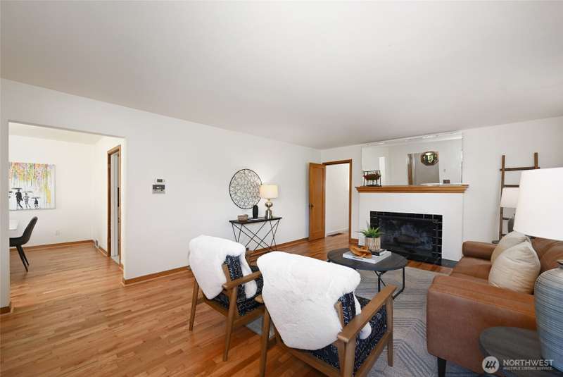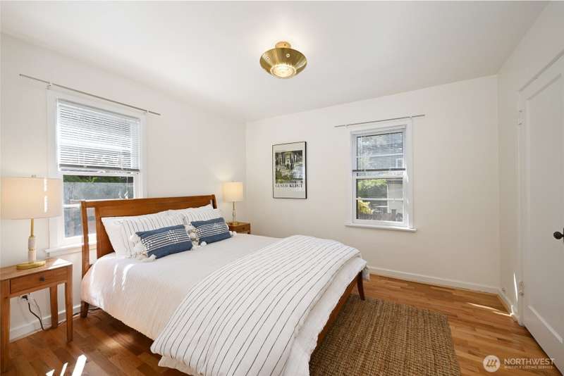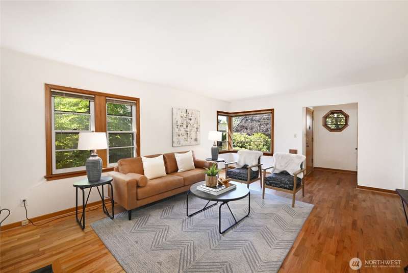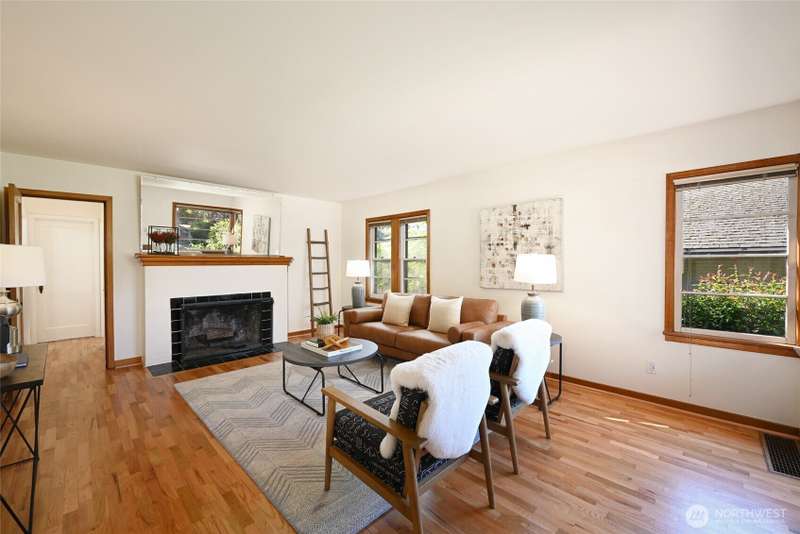Located in a highly desirable Greenlake neighborhood. Beautifully maintained home blends classic charm with thoughtful modern updates. Refinished original hardwood floors through main living areas. Large windows & wood burning fireplace create a warm, inviting living room. Dining room features corner windows & stylish lighting. Remodeled kitchen w/white cabinetry, quartz countertops & new SS appliances. Downstairs offers new carpet, a rec or office area w/fireplace & a bonus room that could be possible 3rd bdrm, spacious laundry/utility area, ample storage & EV charger. Enjoy a private, professionally landscaped yard w/mature plantings & a patio perfect for BBQs. Easy walk to Greenlake, restaurants & coffee shops w/close access to freeways.