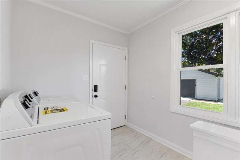 Fully Renovated & Move-In Ready - Bring Your Offer! This beautifully updated 4-bedroom, 2-bath single-family home has been completely renovated from top to bottom, blending modern finishes with timeless comfort. Step inside to an open layout featuring brand-new flooring, fresh paint, and new windows throughout. The spacious kitchen showcases new cabinetry, quartz countertops, and stainless steel appliances (2025), along with a new washer and dryer for added convenience. Each level includes a full bathroom, both thoughtfully designed with stylish tile and updated fixtures. The basement is framed and prepped for a future third bathroom-offering flexibility for expansion. Outside, enjoy a new front porch, updated driveway, fenced yard, and a detached garage. This move-in ready home is a clean slate, allowing its next owner to add personal touches and truly make it their own.