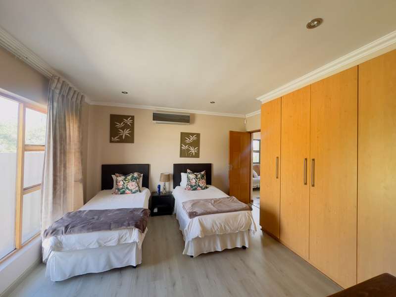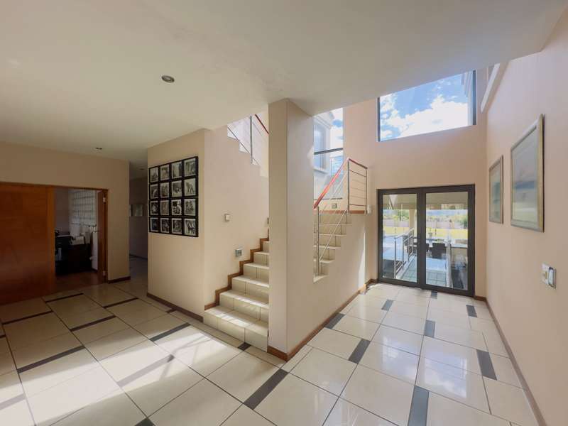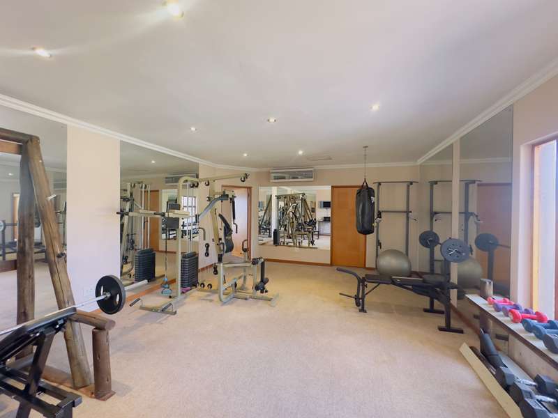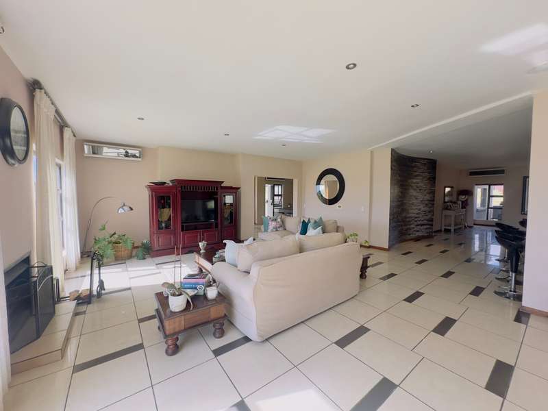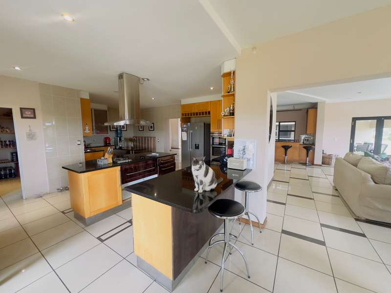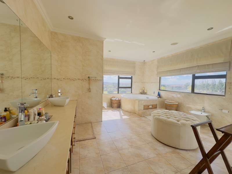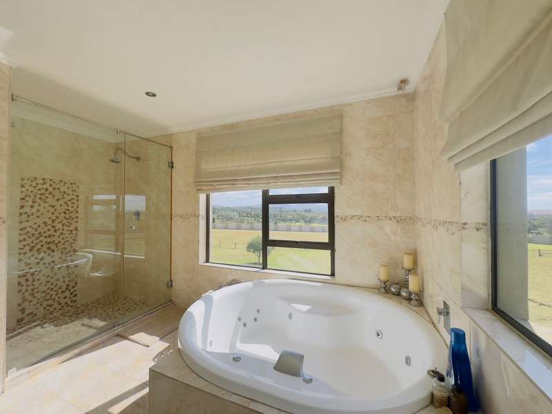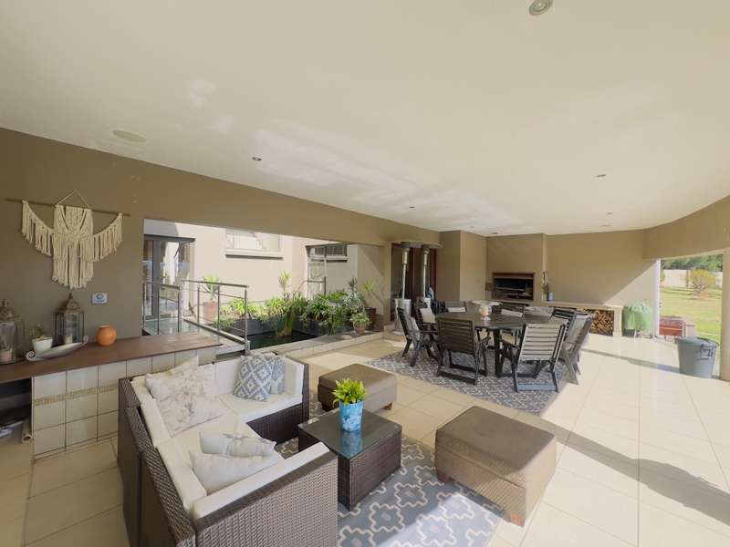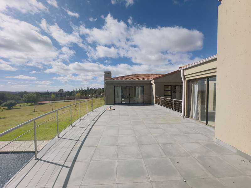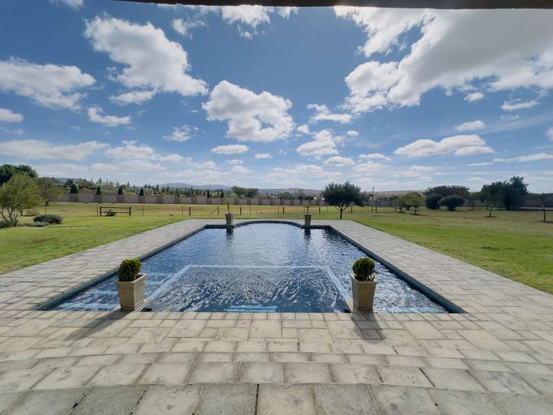 Experience Tranquility and Luxury at Blue Saddle Ranches - Just 20 km south of Alberton, discover a haven of peace and sophistication in this executive estate. This exceptional property seamlessly blends luxury, comfort, and top-tier security—offering a lifestyle tailored for the discerning homeowner. Step through the grand double glass doors crossing the sleek glass bridge into an atmosphere of refined elegance - Perfect for entertaining, the expansive covered entertainment area features a built-in braai and a modern swimming pool—ideal for weekend relaxation or hosting guests in style. Indoors, a cozy lounge with a fireplace and an elegant bar provides the perfect setting for quiet evenings or lively gatherings. A stylish dining area and well-appointed kitchen—caters to both culinary creativity and casual dining - With a breakfast nook, stove, pantry, and scullery, this space is designed for ease and sophistication. For film lovers, a private cinema room promises the ultimate movie nights, while a spacious home office is ideal for remote work or study. This remarkable property includes two distinct homes. The main residence boasts six en-suite bedrooms, including a luxurious main suite with a fireplace, expansive walk-in wardrobe, and a separate room perfect for a nursery or private study. Wellness enthusiasts will appreciate the in-home gym, complete with steam room, sauna, shower, and toilet. A generous duplex flatlet with separate living spaces offers flexible accommodation for extended family or guests. The second home, with its own entrance and private driveway, features two bedrooms, a full bathroom, a sleek modern kitchen, and an open-plan dining and lounge area that leads onto a wraparound patio overlooking a manicured garden. A two-car carport adds practical convenience. Additional Features Include: • Three garages • Borehole with a comprehensive filtration system • Established fruit trees and vegetable garden • Guest toilet • Multiple living and workspaces • Cinema room with fireplace Schedule Your Private Viewing Today Opportunities like this are rare—step into an extraordinary lifestyle at Blue Saddle Ranches. Contact us today to arrange your exclusive tour.