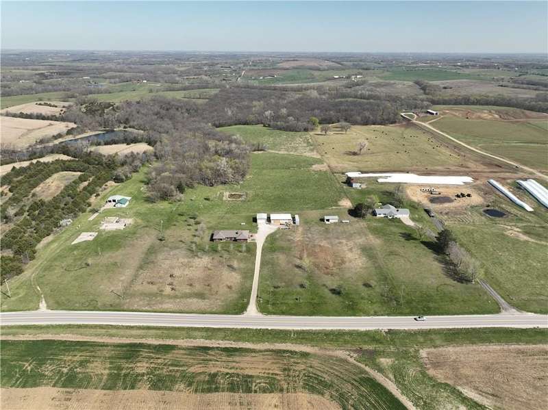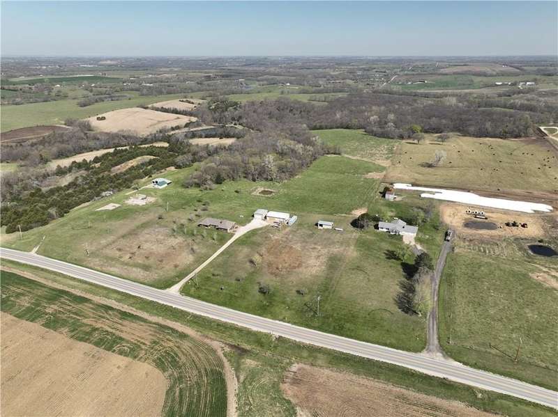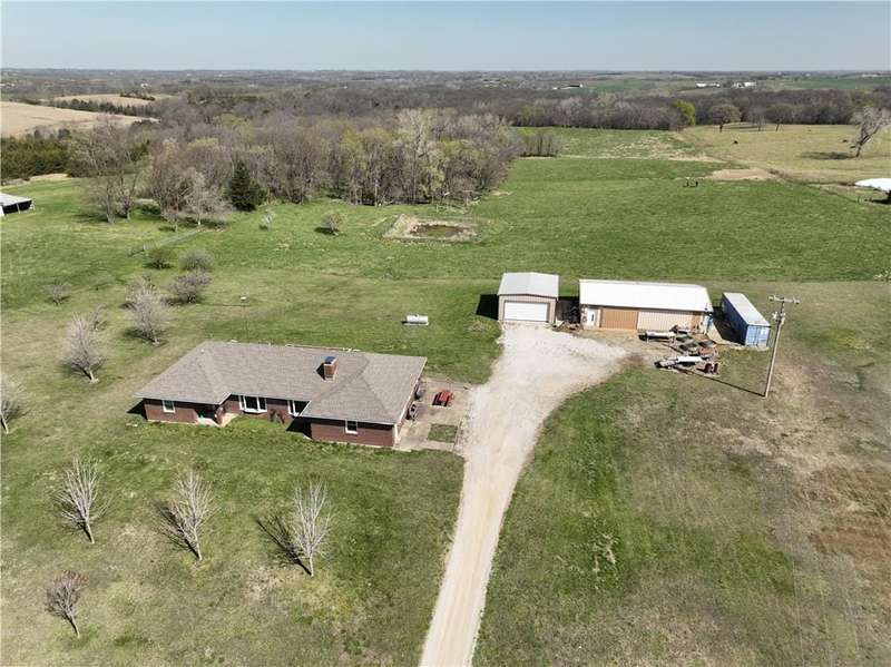 NEW PRICE! MOTIVATED SELLER! ALL BRICK TRUE RANCH ON 30.21 ACRES LOCATED BETWEEN McLouth and Oskaloosa Kansas. Oskaloosa Schools. Fenced on approximately 25 acres, so ready for your horses/cattle/or special animals, several water hydrants located on land. Setting on an asphalt road. Some fencing may need repairs. Home was set up with an in-law quarters, on main level with additional kitchen, living room, bedroom, and bath. Two heat pumps operate areas separately. WBFP's with blowers are fed into the ductwork. Additional basement area to finish. Roof is 4 years old. Home need some updating but built like a fortress. Basement has approximately 530' finished square feet but has more to finish. 4 full baths in home. Anderson window are 8 years old, new hot water tank stay but not hooked up. New gutter and downspouts. Property boast 3 outbuildings: 30x23 Metal Construction Garage with 18 foot door plus rear garage door and concrete floor, 30x48 Work Shop with 3 phase wiring, all insulated, full bath and office plus shelving stay, wiring is ran in conduit under the floor. Third storage barn with concrete floor and lean to for pets.