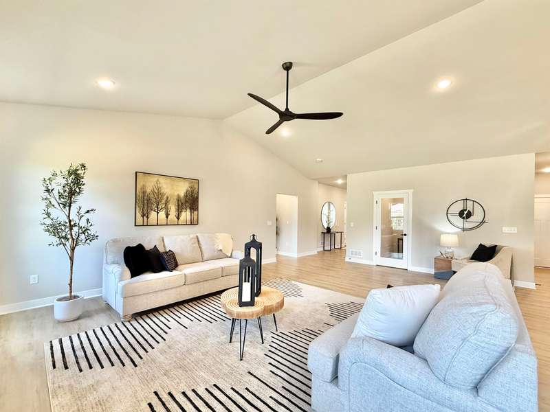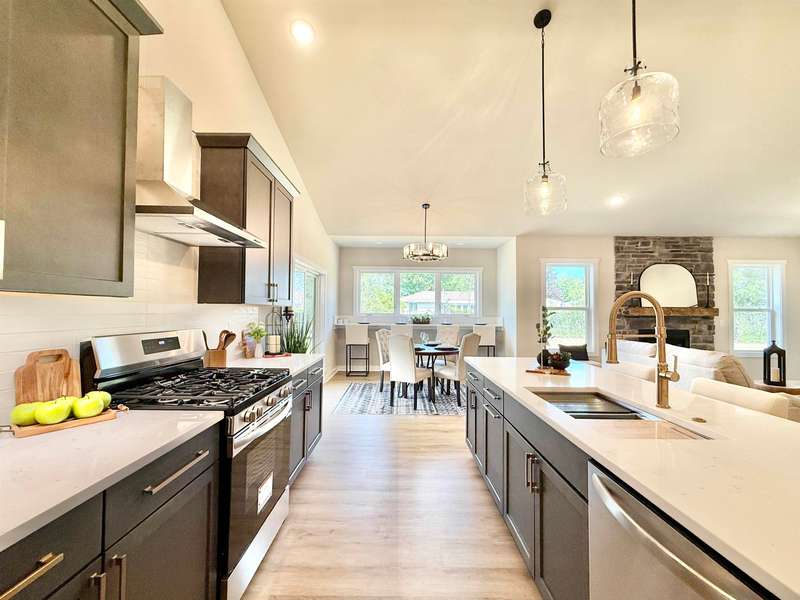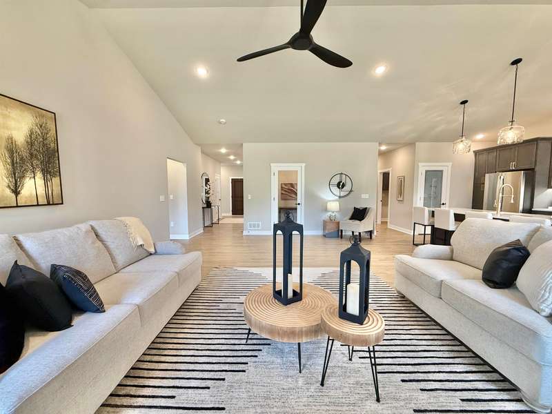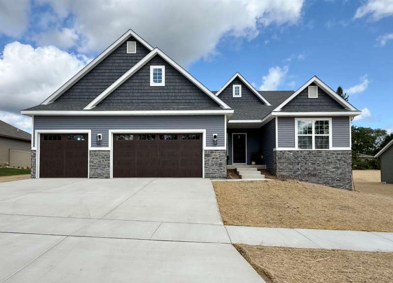 Introducing Acadia Homes' 2025 Parade of Homes featured showcase, a beautifully designed 5 bed, 3.5 bath ranch that blends elegance with everyday comfort. Step inside to an open floor plan, a spacious great room with cathedral ceilings & a gas fireplace, making a perfect gathering space. The gourmet kitchen is the heart of the home, featuring a large island flowing into the dining area with a raised breakfast bar, ideal for casual meals or entertaining. Just off the dining area, a screened-in porch invites you to relax and enjoy backyard views. The primary suite is a private retreat with a walk-in closet, tiled shower, and double vanity. The finished lower level expands the living space with two additional bedrooms and a generous family room. An oversized 3 car garage completes this home.