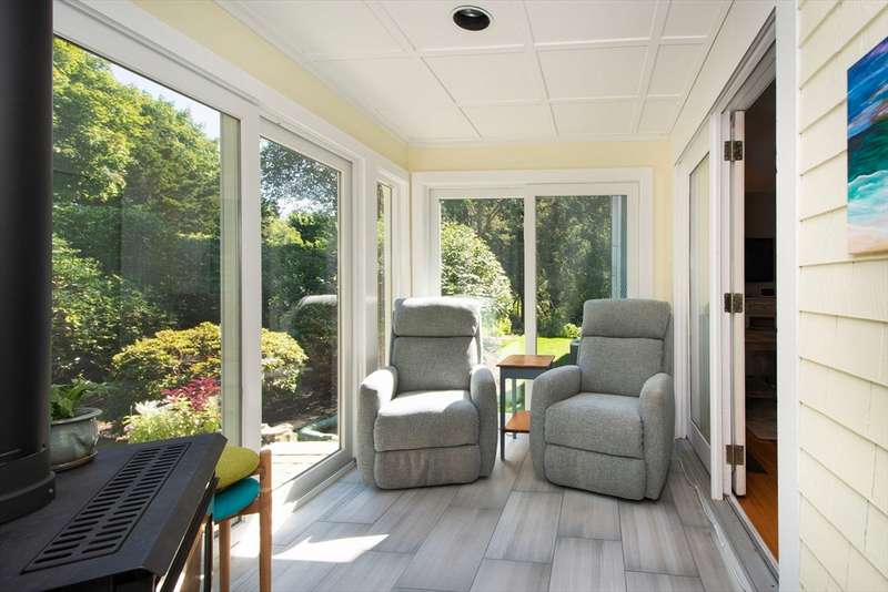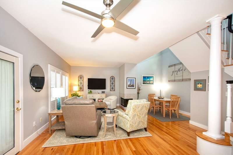 Your sanctuary awaits! Rarely available 2 bedroom, 2 1/2 bath townhouse at The Hall Estates. Nothing for you to do except move right into this updated & impeccably decorated home. Living room with hardwood floors & gas fireplace to dining room & vaulted ceiling & closet. Updated kitchen with quartz countertops. Enclosed sunroom with gas fireplace. Private patio & beautiful landscaping. Both bedrooms on 2nd floor include their own full en-suite bathroom & the updated primary bathroom has a generous walk-in shower! Primary bedroom features dual closets with upgraded built-in storage systems. White plantation shutters throughout home. Unit includes full height attic for storage accessed via pull down ladder. Exterior envelope (roof, siding, window, doors) updated 2023. Attached 1 car garage with bonus attic storage as well. Come see the best that living at The Hall Estates has to offer - then explore the nearby beaches, restaurants & ferry service to Boston & Logan Airport!