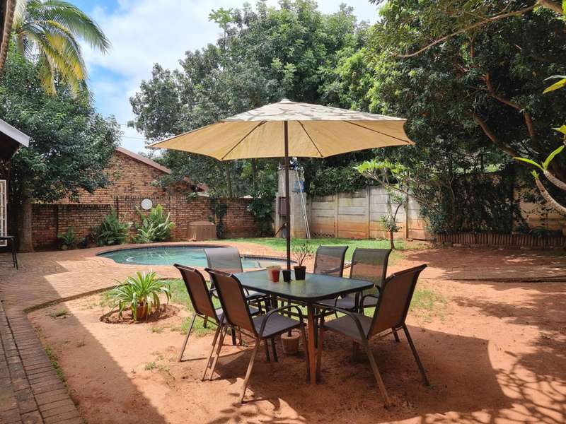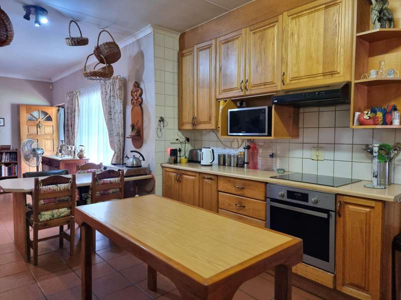 The lovely, cosy flat behind the main house has two bedrooms, each room with its own bathroom. Small open plan kitchen to the lounge. Doors opening up onto green lawn and swimming pool.
