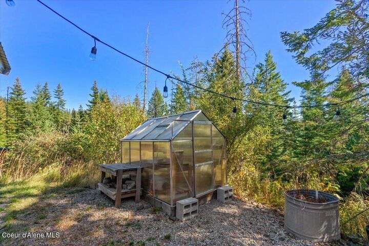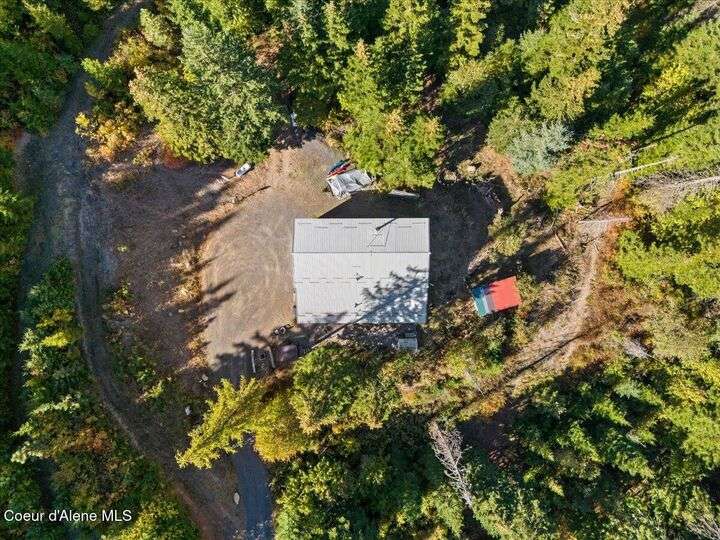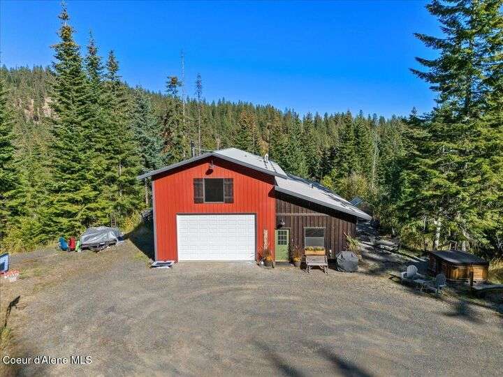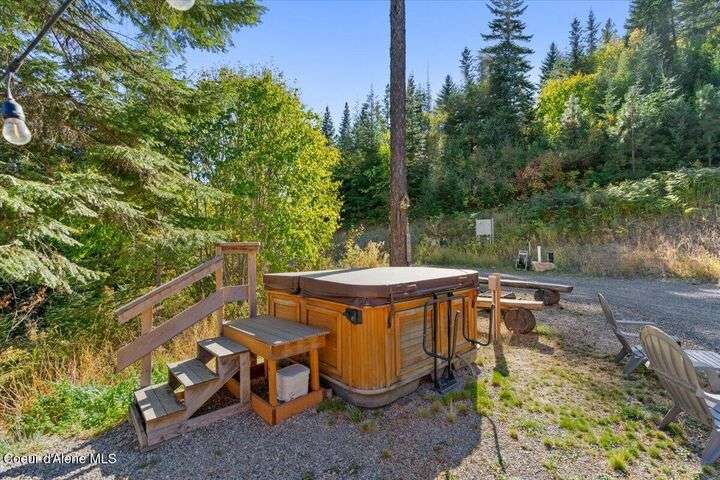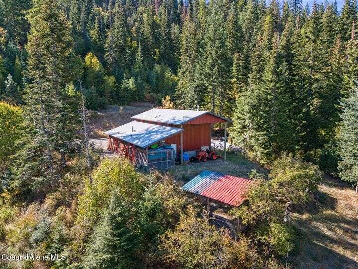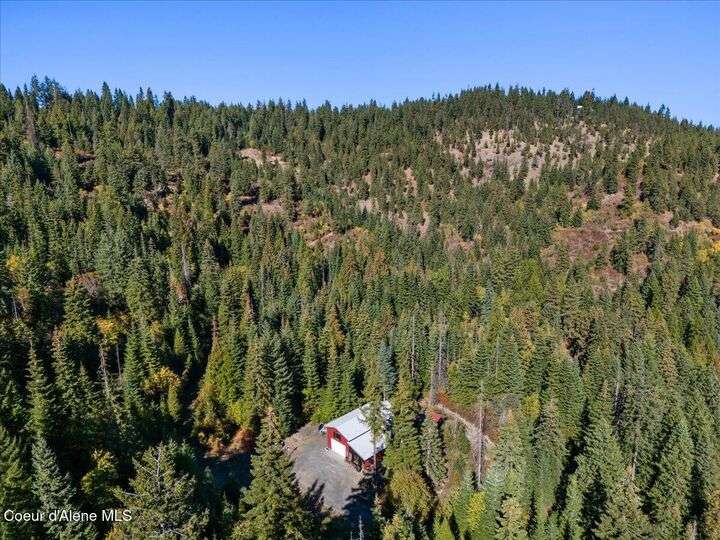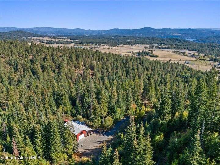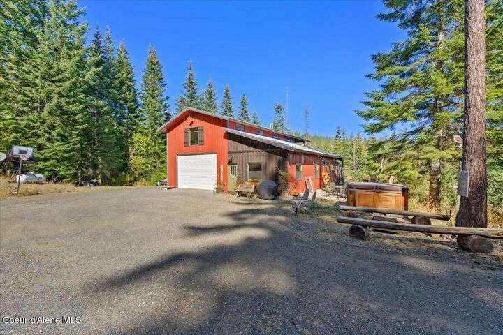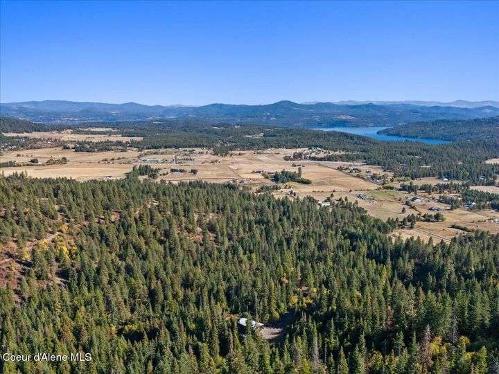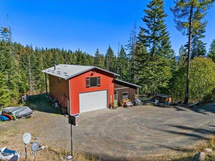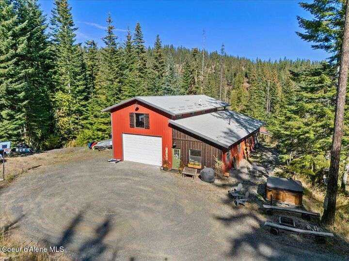 Escape to over 12 acres of pristine North Idaho beauty just 15 minutes from downtown Coeur d'Alene. This peaceful 2-bedroom, 1-bath retreat combines rustic charm with modern comfort, featuring radiant floor heat throughout both the home and the 24'x40' shop. The inviting interior includes a bright, fully equipped kitchen, cozy living space, and thoughtful finishes designed for everyday living or a relaxing getaway. Step outside to unwind in the hot tub under the stars, gather around the fire pit, or enjoy the sounds of nature from your own private setting. With ample room to roam and a prime elevated site offering potential for a future dream home with partial lake views, this property delivers unmatched versatility—ideal as a vacation rental, investment, or your own North Idaho sanctuary.