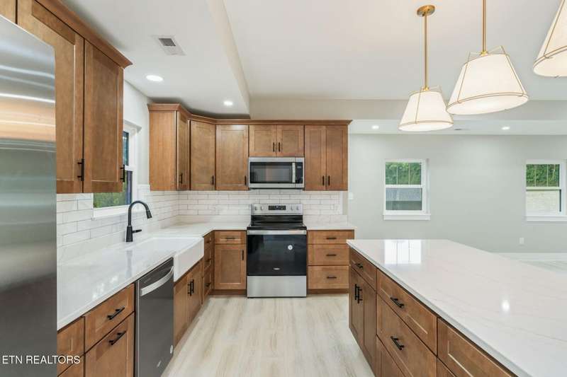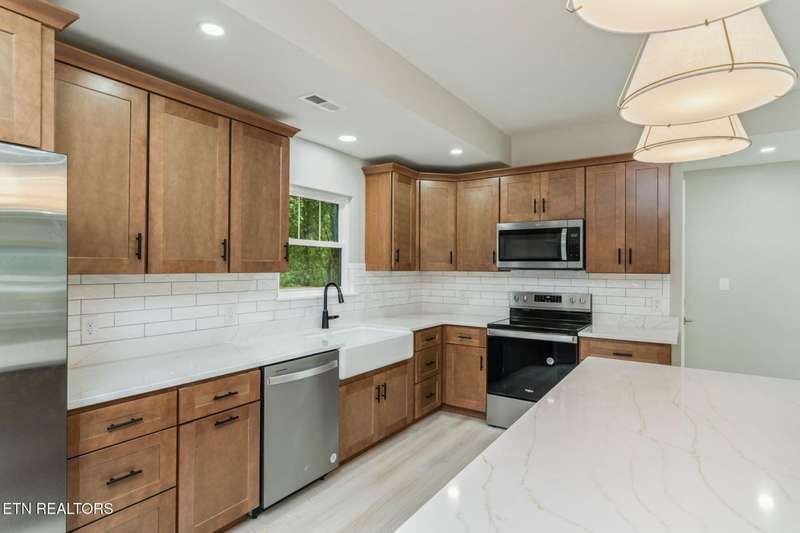 Welcome to a rare blend of luxury, privacy, and prime location-where every inch of this stunning modern rancher has been meticulously reimagined. Spanning over 3,400 square feet of completely renovated living space, this 4-bedroom, 4-bathroom brick rancher offers timeless design with all the modern comforts. From the chef-inspired kitchen to the serene, spa-like primary suite, every detail has been carefully curated to create a sense of refined elegance and effortless living. The open floor plan is bathed in natural light, showcasing high-end finishes, designer fixtures, and custom touches throughout. Each bathroom has been fully updated with premium tilework, sleek vanities, and upscale hardware, offering both comfort and style for family and guests alike. Step outside and you'll find your own private retreat-complete with a brand-new pool liner, updated pool equipment, and a beautifully appointed pool house. Whether you're hosting a summer gathering or unwinding in the sun, this outdoor space is designed to impress.