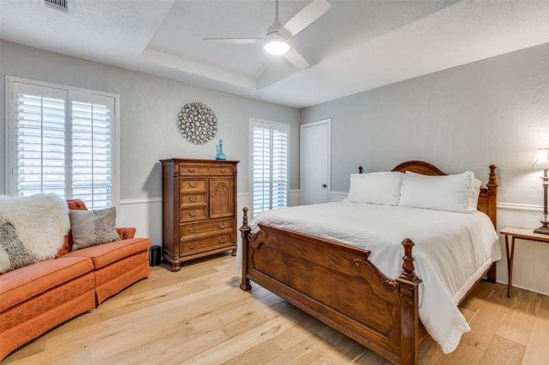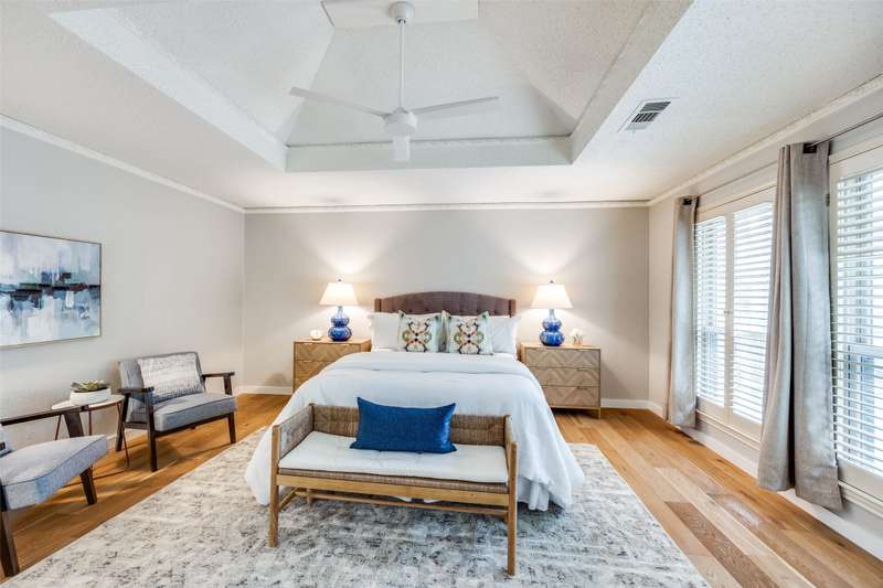 Welcome to your dream home in Lake Highlands framed by magnificent mature Live Oaks! This beautifully updated four-bedroom, two and a half bathroom residence blends modern amenities with timeless charm, perfect for families or those seeking extra space. The home features a spacious open floor plan, hardwood floors, and an abundance of natural light throughout. The heart of the home is the gourmet kitchen, equipped with stainless steel appliances, quartz countertops, and a gas cooktop that is ideal for entertaining. Adjacent to the kitchen, an expansive living area with portrait molding, vaulted ceilings and a fireplace that opens to a private courtyard and a large backyard, creating a seamless indoor-outdoor living experience. The primary suite offers a tranquil retreat with a spa-like en-suite bathroom, double sinks, and a walk-in closet. Three additional bedrooms provide ample space for family, guests, or a home office setup. Located just minutes from top-rated schools, parks, shopping, and dining, this home combines convenience with the serene Lake Highlands lifestyle. 2 car attached garage. Prime location to White Rock Lake, Royal Oaks CC, NorthPark, popular dining & shopping w easy access to highways. Zoned to coveted Merriman Park Elementary!