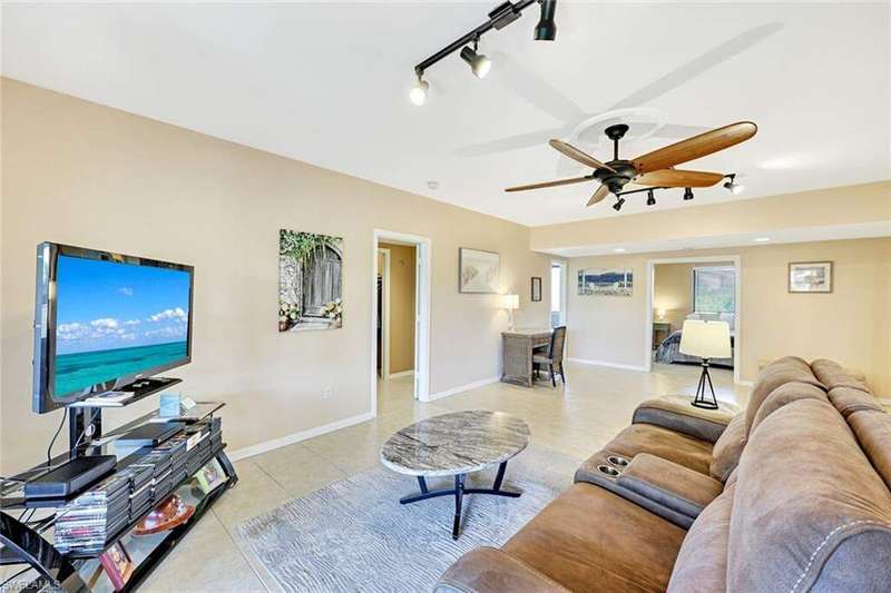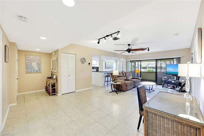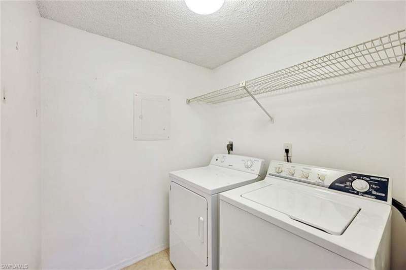 Live the coastal lifestyle you've been dreaming of! This beautiful second-floor end unit is ideally located west of US-41 and just 1.8 miles from the Barefoot Beach entrance, close enough to walk or bike to the beach. Enjoy quick access to Naples and Bonita Springs' finest dining, shopping, and entertainment. The residence offers 2 spacious bedrooms and 2 full baths, featuring an open, inviting layout that seamlessly blends comfort and style. Step out onto your private veranda, perfect for alfresco dining, entertaining guests, or simply unwinding as you take in Florida's spectacular sunsets. Recent upgrades include a new A/C (2024) and water heater (2023), providing peace of mind and modern efficiency. A separate designated storage room offers convenient space for beach gear and personal items. Located in the Shore Woods community, residents can enjoy the sparkling pool just steps away, ideal for relaxing and soaking up the Florida sunshine.