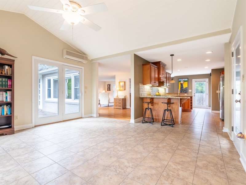 Convenient and sought after Lakeview Park home only 2/10ths of a mile from the "quiet side" of Beaver Lake. Spacious and light filled one level living offers a primary suite with a separate entry room that could serve as an office or library. Previously used as a fourth bedroom. Bedroom two has an en suite bath. An updated kitchen flows nicely from the great room with vaulted ceilings through the dining room and out onto your deck. Perfect for entertaining family and friends. The back deck enjoys privacy and mature landscaping and is fully fenced. A second area has been fenced specifically for pets. A large oversized garage provides room for a workshop or car enthusiast.