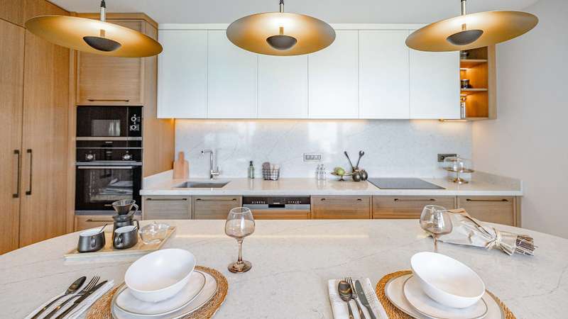 Four bedroom detached villas have a living room, kitchen, dressing room, cloakroom, cloakroom, four bathrooms, a half-bath and storage. Five bedroom detached villas have a living room, open plan kitchen, dressing room, cloakroom, five bathrooms, a half-bath and storage. In addition to the spacious interior living areas, the villas have four terraces.
