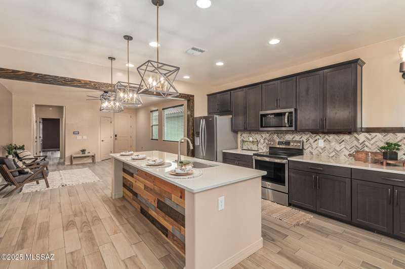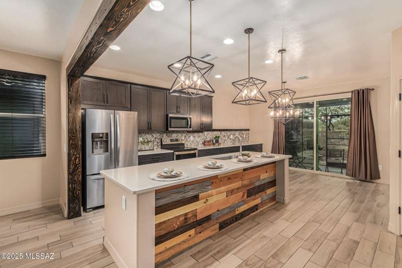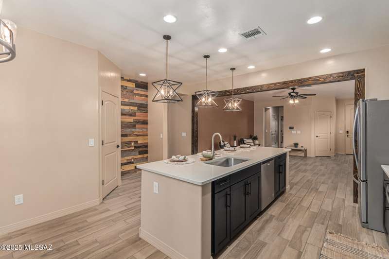 Welcome to your desert oasis! This beautifully maintained 2019-built home is nestled just minutes from the scenic Del Lago Golf Course and located in the highly sought-after Vail School District. Offering a perfect blend of style and function, this home features an open floor plan ideal for modern living, with custom real wood accents that bring warmth and character throughout.Step outside to enjoy the built-in patio--perfect for entertaining or relaxing year-round--surrounded by low-maintenance desert landscaping that creates a tranquil, resort-like atmosphere. Whether you're a first-time homebuyer, a family looking to grow, or simply seeking a peaceful retreat with thoughtful upgrades, this home is a must-see