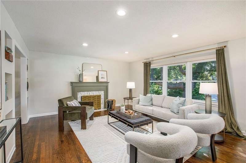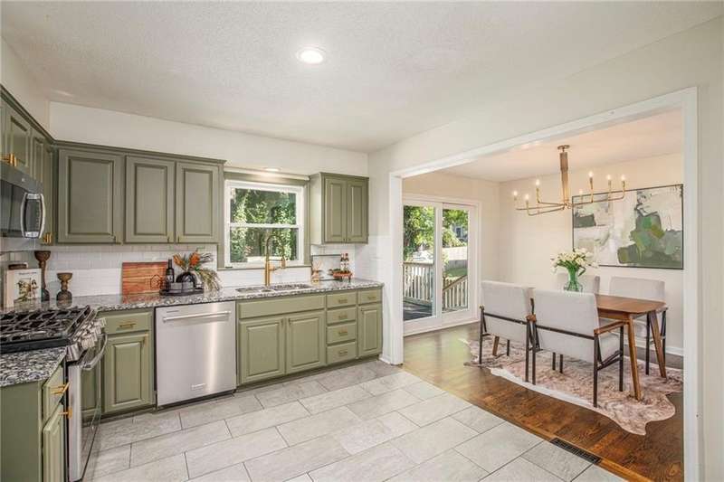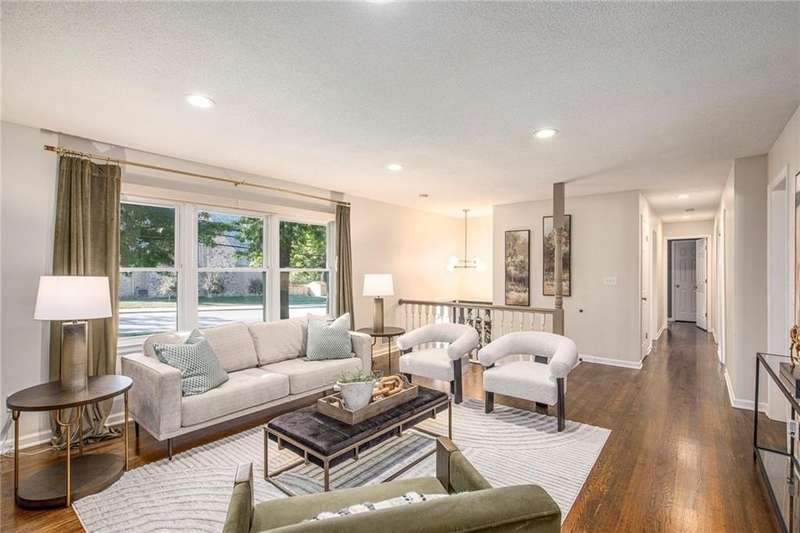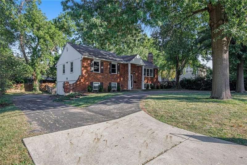 Charming Split Level home in Prairie Village! Beautiful updates throughout and stunning wood floors on the main level. Inviting great room with a fireplace and large windows. Updated kitchen with striking green cabinets, stainless appliances, and granite countertops. Eat-in kitchen plus a formal dining room. Large primary suite with a sitting area, walk-in closet, and a private bath. Finished walkout lower level with a family room, 2nd fireplace, 4th bedroom, full bath, and laundry room. Nice deck and patio for entertaining. Two car garage with a large circle driveway. Close to schools, shopping, and restaurants.