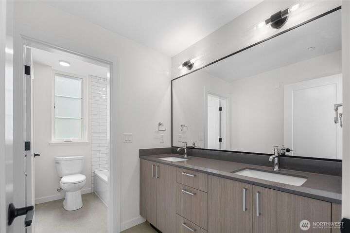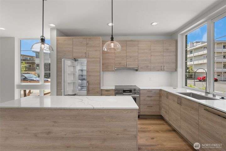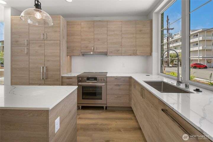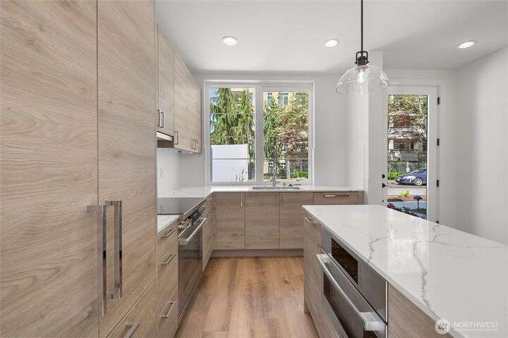 Introducing Jackson & Elm - an intimate townhome community perfectly executed by Mirra Homes! Just a few blocks from Lake Washington and offering an incredible 91 Walk Score, this is Kirkland living at its absolute finest. Upscale restaurants, vibrant parks, buzzing farmers markets, the beloved PCC Market, and the sparkling waterfront are all just seconds away. The 'Marina Home' floor plan marries elegance with purpose: three serene bedrooms, each with a private ensuite; a pristine kitchen with luxurious finishes and multiple inviting spaces where you can just unwind. Side by side parking for 2 equipped with EV charging. This SW corner unit features ample light + a skyline view.