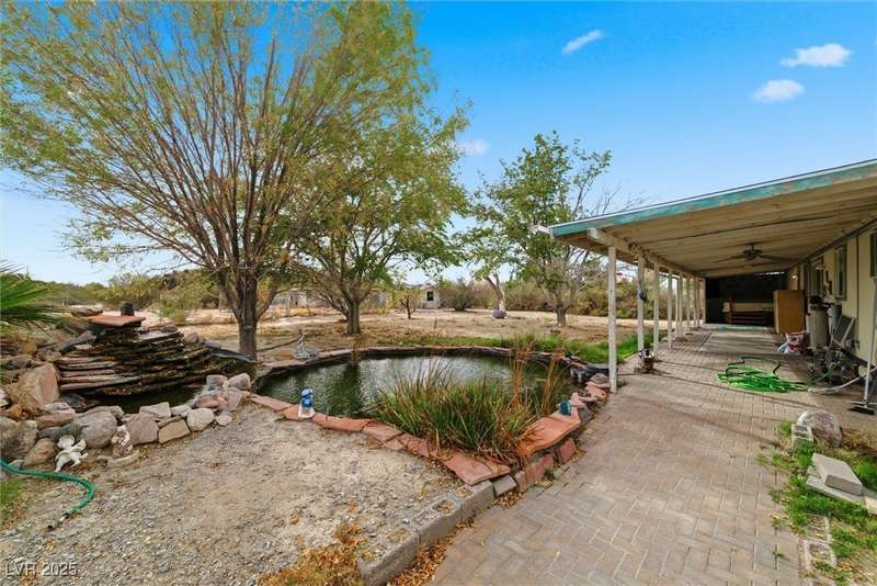 Nestled on 1.24 acres, this inviting 1,782 sq. ft. home blends space, comfort, and country charm in a peaceful Pahrump setting. Built in 1999, it features 3 bedrooms, 2 bathrooms, and an open floor plan ideal for relaxed living. Enjoy tranquil desert views from the covered porch, unwind by the beautiful koi pond, and take advantage of ample room for your toys, animals, or future projects. Perfect for those seeking wide-open living while staying close to local conveniences.