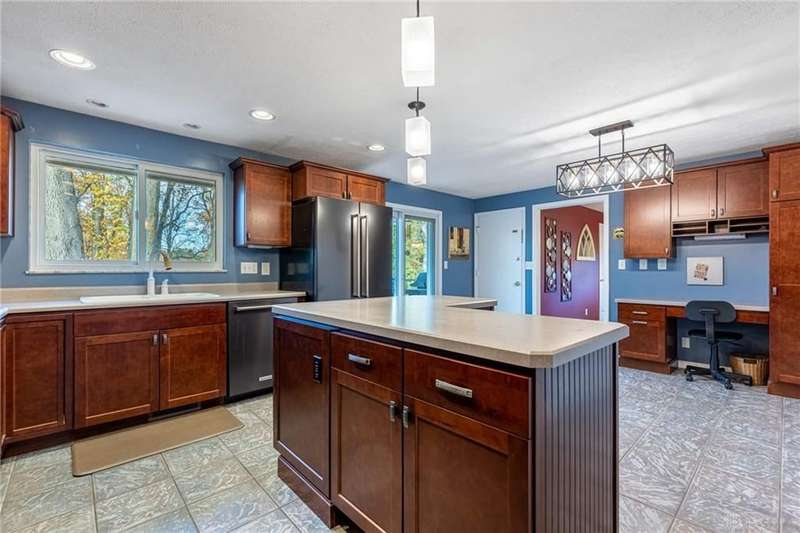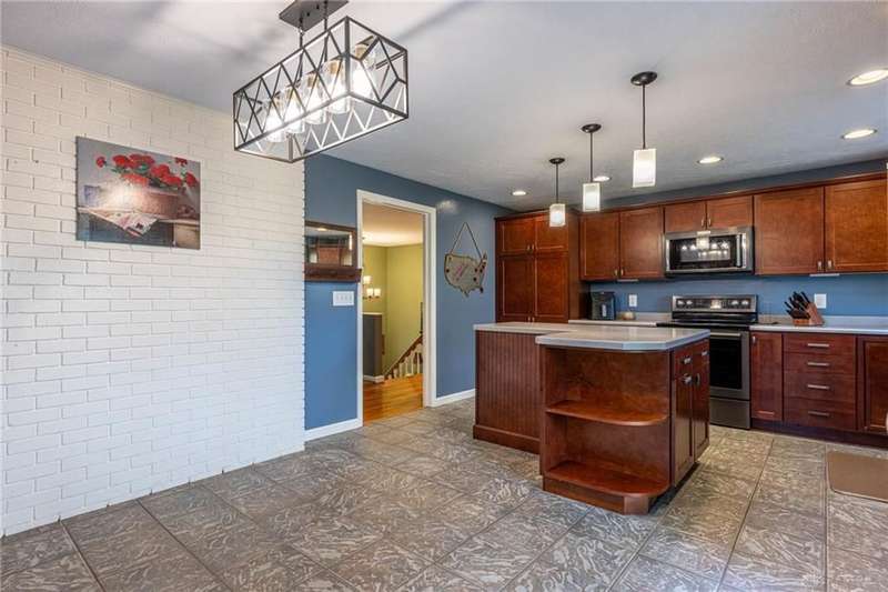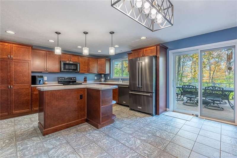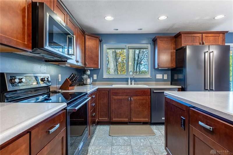 Stunning 5-Bedroom, 3-Bath Brick Home with 3,720 Sq. Ft. of Living Space!Beautifully maintained and thoughtfully updated, this impressive home features a unique floor plan that offers the feel of a spacious ranch with the bonus of a finished lower level. The updated kitchen is a cook's dream, complete with abundant cabinetry, a large work island, desk and an inviting eat-in area. All kitchen appliances convey!Generous closets, including walk-ins, plus a huge under-stair storage area provide exceptional organization and space. Enjoy gorgeous views from every window and a private rear yard with deck access from the kitchen, perfect for entertaining or quiet evenings outdoors. After dark you'll see this beautiful home lit up with outdoor lighting accents.The home offers two fireplaces: a wood-burning fireplace on the main level and a cozy gas fireplace in the lower-level family room. The oversized side-entry garage includes stairs to both the kitchen and basement for added convenience.Updates include modernized electrical service with back-feed switch for a generator and a new water heater (2023). There's also plenty of off-street parking for all your friends and family in this extra deep driveway.Bright, open, and full of charm, this home is tucked away in a scenic, tree-lined neighborhood conveniently located near shopping, parks, schools, WPAFB, Dayton, and I-675. Truly a one-of-a-kind property that blends comfort, style, and functionwith everyday living and effortless entertaining.