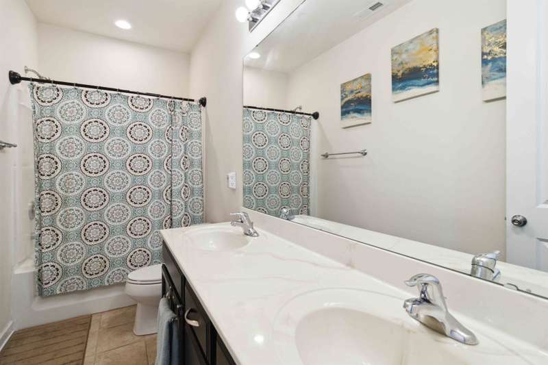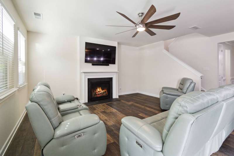 Welcome home to the beautiful community of Lake Crest.This home features a gourmet kitchen with a large island, granite countertops, tile backsplash, cooktop, and plenty of space for family gatherings while cooking and entertaining. There is a gas log fireplace and hardwood floors in the main living area. The first floor offers a guest bedroom with a private full bathroom, a formal living room, and a dining room. Additionally, there is a mudroom. Tall ceilings throughout. The second floor includes a bonus room and four bedrooms. The primary suite is spacious, featuring three walk-in closets and a large bathroom with a walk-in shower.