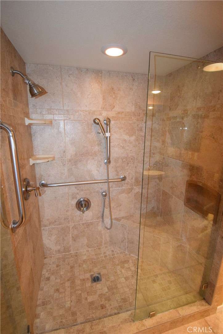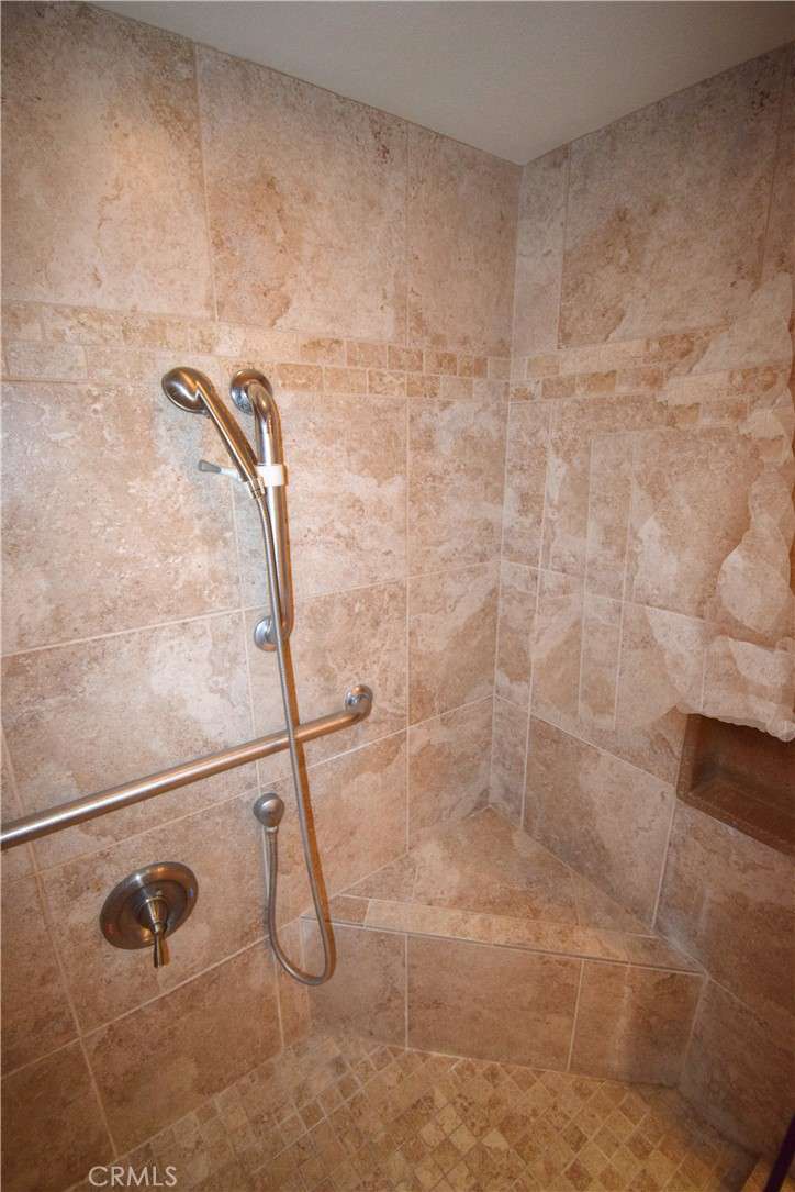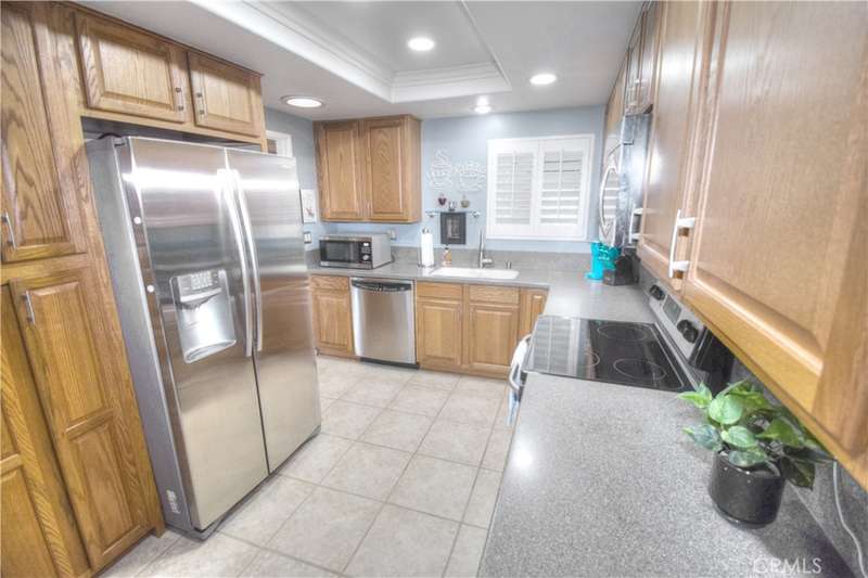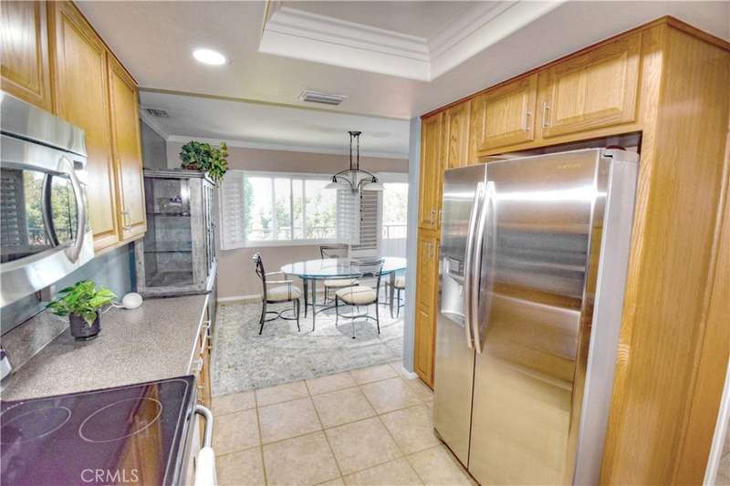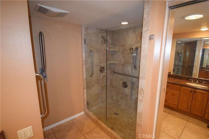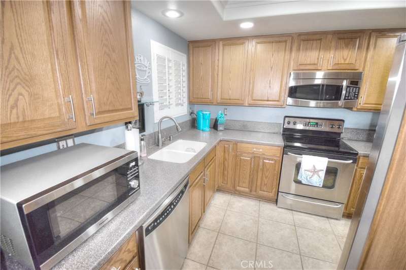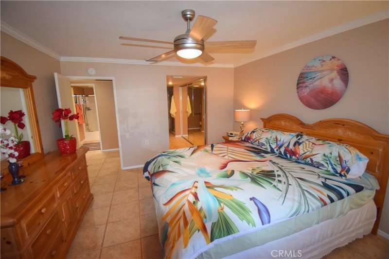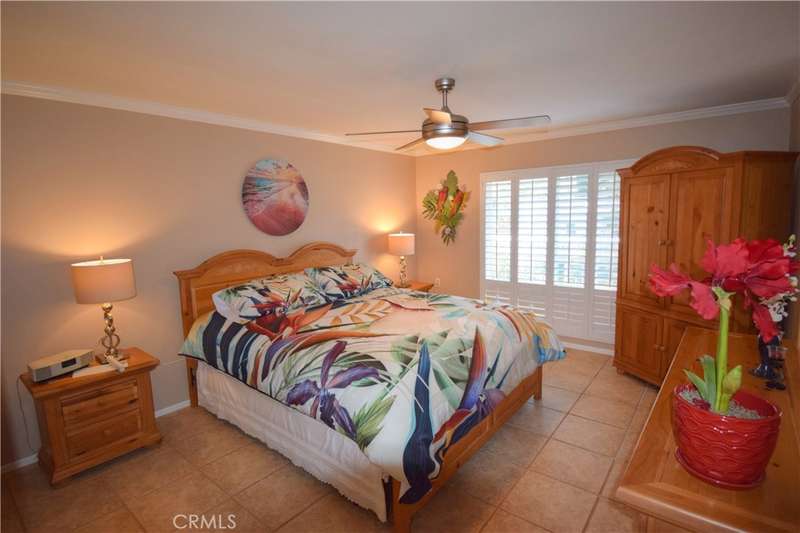 This home is packed with premium features! The open floor plan is complemented by designer tile, smooth ceilings, crown molding, plantation shutters, and double-paned windows throughout. The remodeled kitchen is a chef's delight with solar tubing for natural light, recessed lighting, Corian countertops, stainless steel appliances, and convenient roll-out pantry shelves. It also comes fully equipped with a full-size washer/dryer and central air and heat for year-round comfort. The guest bedroom offers abundant closet space, including a custom organizer, and is illuminated by a skylight. The updated guest bath features a granite vanity, a combination tub and shower, and an additional skylight. The spacious master bedroom boasts a ceiling fan, crown molding, and a private dressing area, with a generously sized closet featuring mirrored doors and custom organizers. The master bath includes a granite top vanity and a large, custom-built shower with built-in seating. Step outside to the covered balcony and enjoy peaceful views of the surrounding hills and trees-- perfect for relaxing after a long day. Plus, extra storage on the balcony provides added convenience. The assigned carport (Space 4, Carport 5016) is located nearby and includes additional enclosed storage.