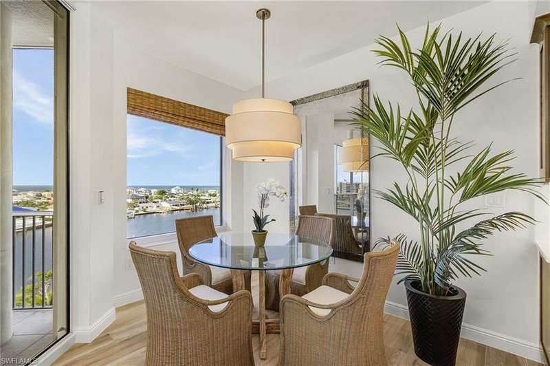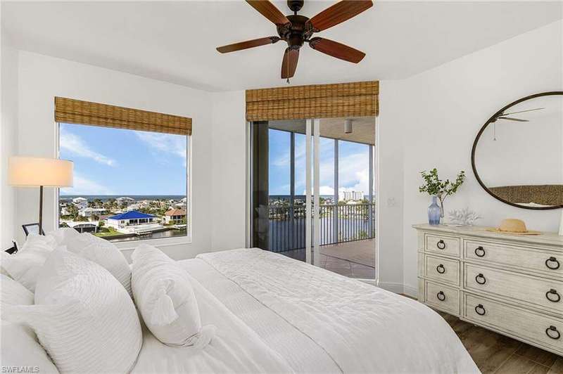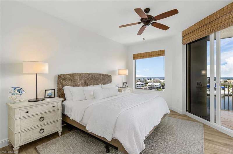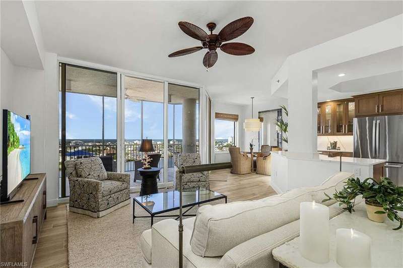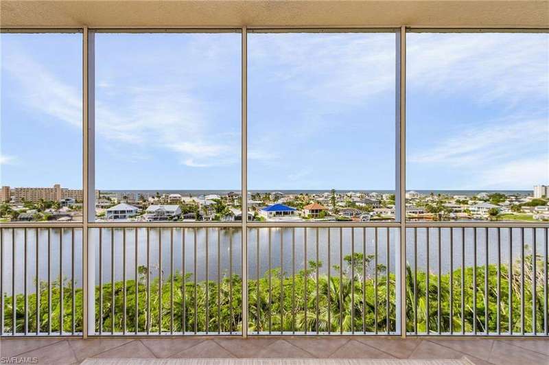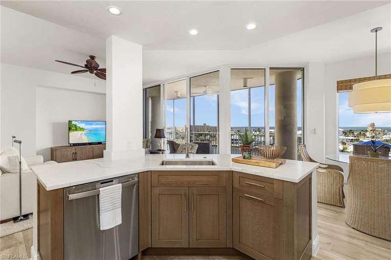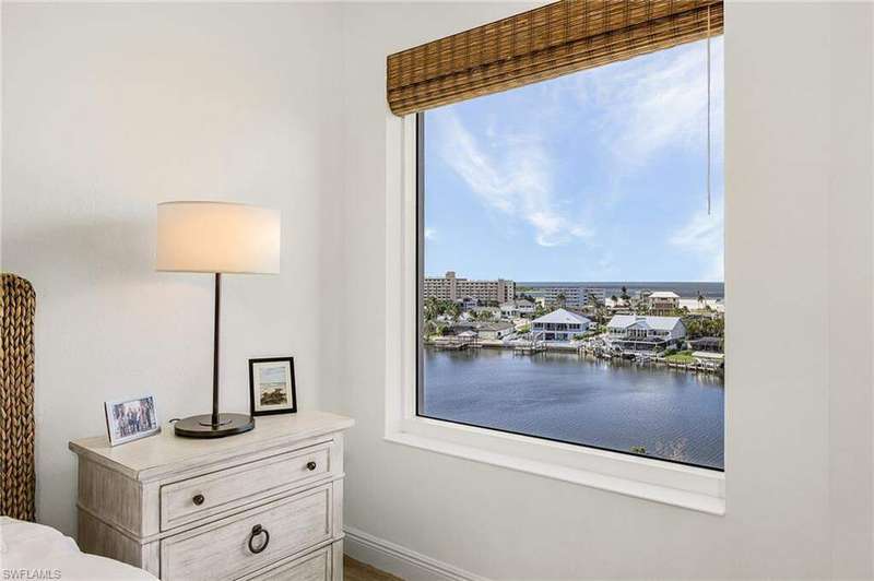 Stunning and fully updated 3 bed/2bath 7th floor condo showcasing panoramic double water views of the Gulf and Estero Bay! Located in Sunset Gulf in the gated Waterside at Bay Beach community. This condo is truly a must see! Take the private elevator to your secured personal foyer. From the moment you enter you will notice the many upgrades. The kitchen has been opened up allowing for a spacious floorpan, perfect for entertaining and enjoying the spectacular views. The kitchen also features new cabinets, quartz countertops and backsplash, lighted glass accents and new appliances. Wake up in the large primary bedroom to gulf views, and enjoy the 2 walk in closets and ensuite bathroom with dual sinks, walk in shower and soaking tub. The split floor plan offers privacy for guests with 2 guest bedrooms and bathroom. One of the oversized lanai's has unbelievable Gulf views with 3 entry points from the living room, dining room and primary bedroom. The second Lanai shows unobstructed view of Estero Bay and is accessible from both guest bedrooms. Have peace of mind with impact resistant doors and windows. Amenities include: 2 Guest Suites, Fitness Center, Community Room, Community Pool, Tennis Courts, Fishing Pier, Walking Paths, Pickleball, Bocce Ball, Chipping Greens, Golf Driving Cage, Deeded Beach Access and Beach Parking. Close to restaurants, shopping, Lovers Key State Park, Bonita Springs, RSW Airport and so much more! Boat slips available for purchase.