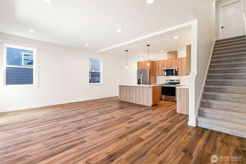 5.5% permanent rate buy-down available & no HOA dues until 2027! Welcome to Trailside, a new Cordata Townhome community. These modern, craftsman style homes offer warm, premium finishes throughout w/ thoughtfully designed floor plans. This is a spacious corner unit, 3-bedroom design w/ a private courtyard. Main floor offers a large great room, primary bedroom w/ en-suite bath, half bath, mudroom/laundry, & kitchen w/ quartz counters, custom wood cabinets, & full stainless-steel appliance package. Upstairs you will find storage space, full bath, and 2 additional bedrooms w/ walk-in closets. Features include ductless heat/AC, premium flooring, ample storage, 9-ft ceilings, & the list goes on. 2 driveway parking spaces right out the back door!